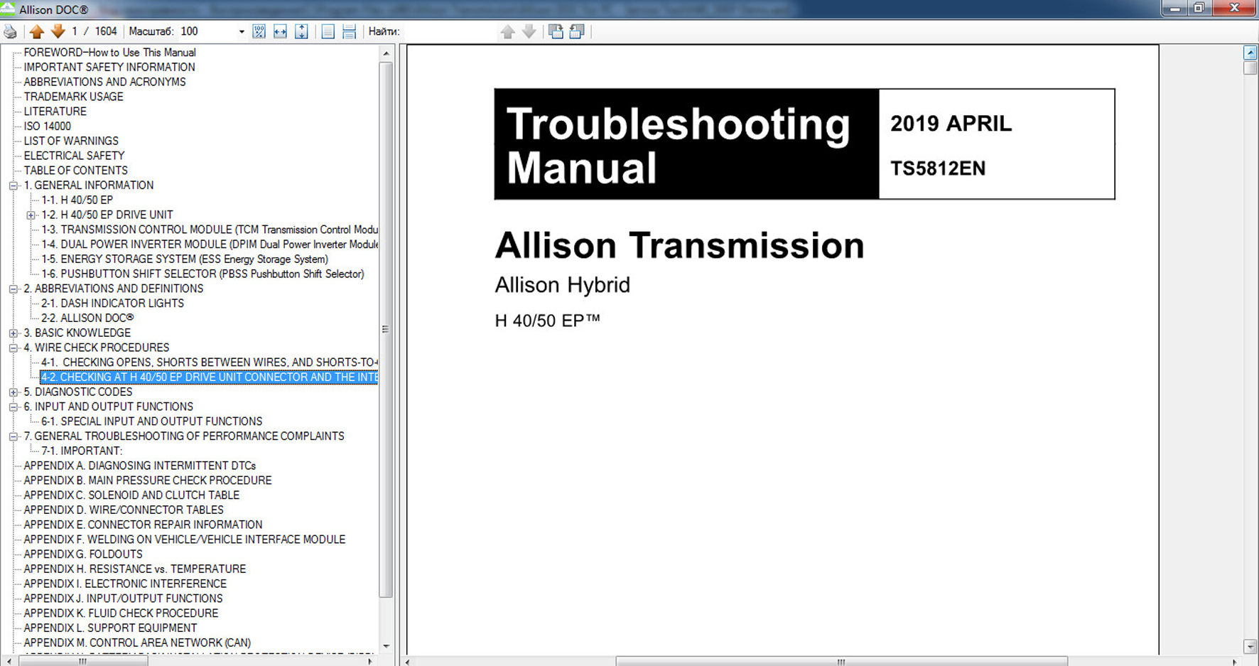 В диагностической программе Allison DOC имеются встроенные мануалы по устройству коробок