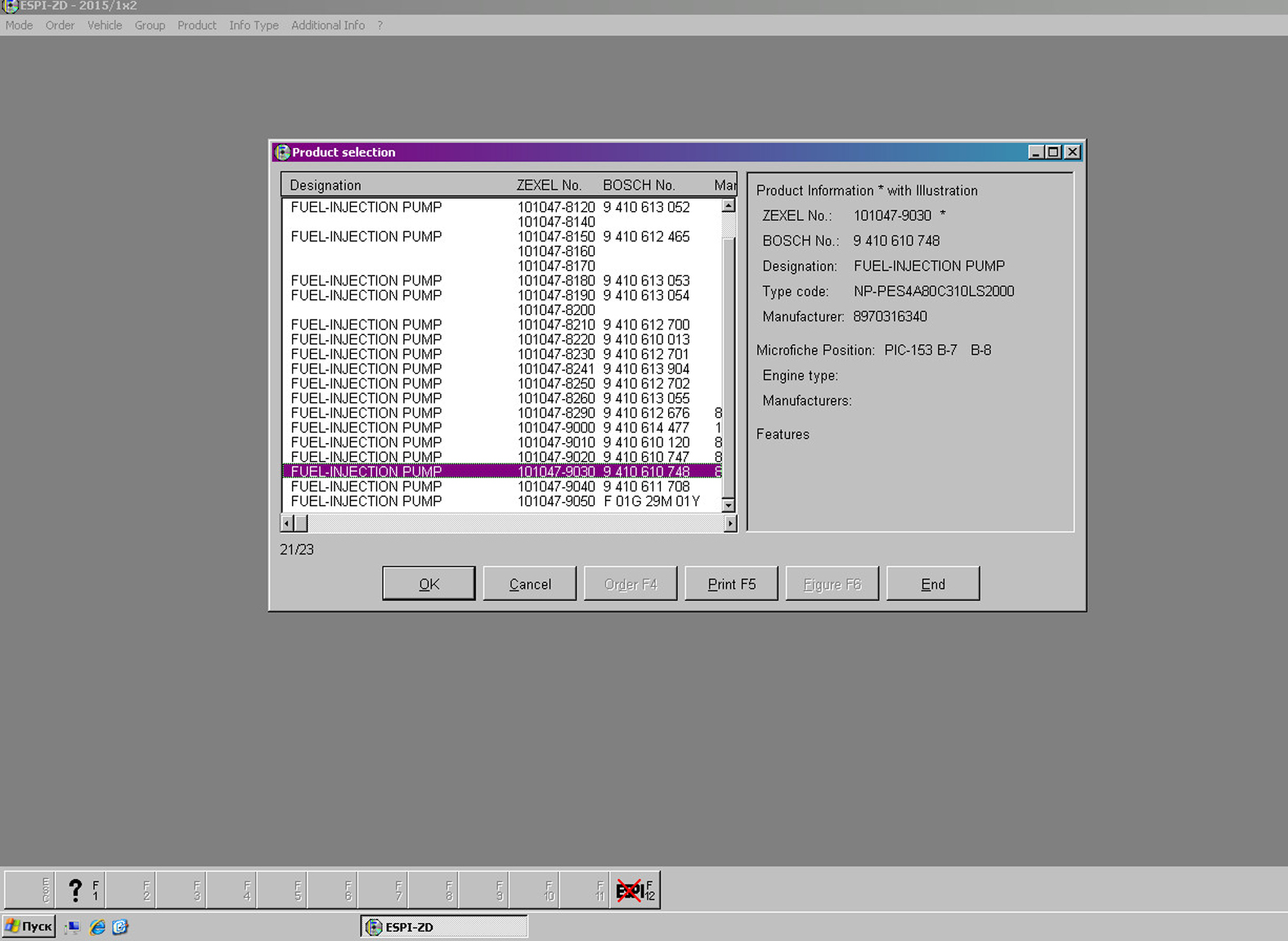 Интерфейс базы по запчастям Bosch Zexel (Zd + Zx + Zw) полностью аналогичен старым версиям программы Bosch.
