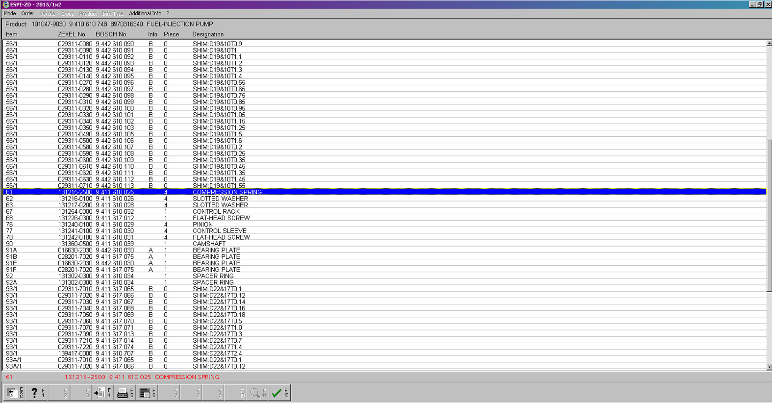 Каталог автозапчастей Zexel ESPI содержит подробный каталог деталей и данные по кросс-референсу для всей продукции фирмы Bosch ZEXEL выпускаемой по лицензии фирмой Zexel для автомобилей японского рынка.