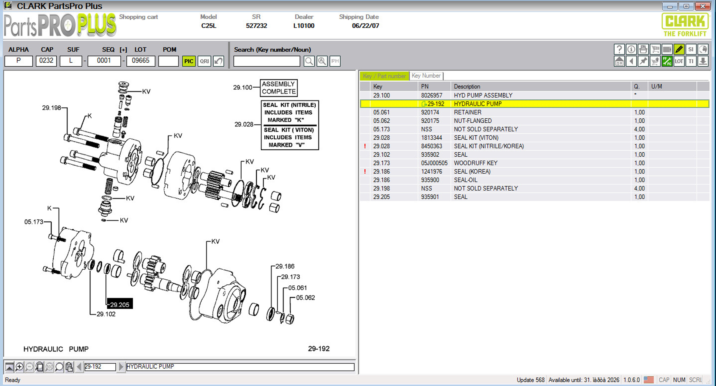 Дата выпуска каталога запчастей CLARK FORKLIFT по: 08-2025 год (UPDATA 568)