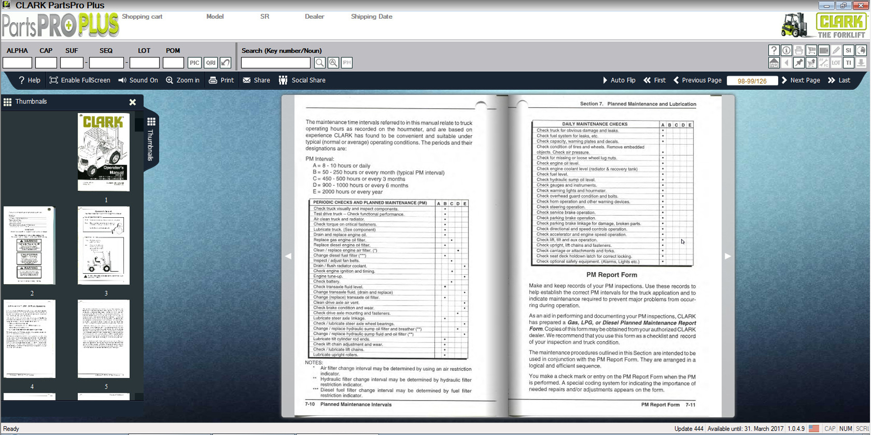 Интерфейс каталога запчастей Clark PartsPROPlus Fork Lift очень простой и удобный, есть поиск по модели, серийному номера, перечень применяемости детали, так же доступны сервисные бюллетени.