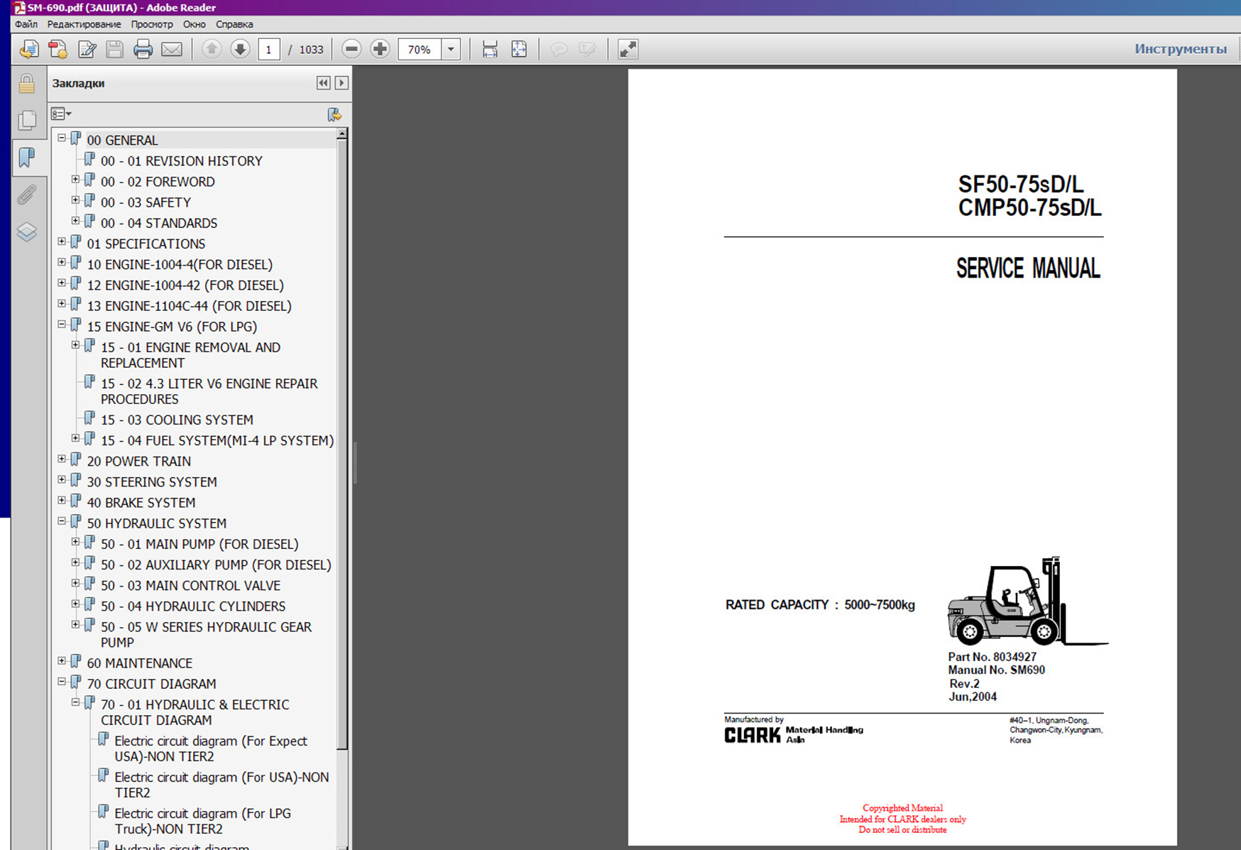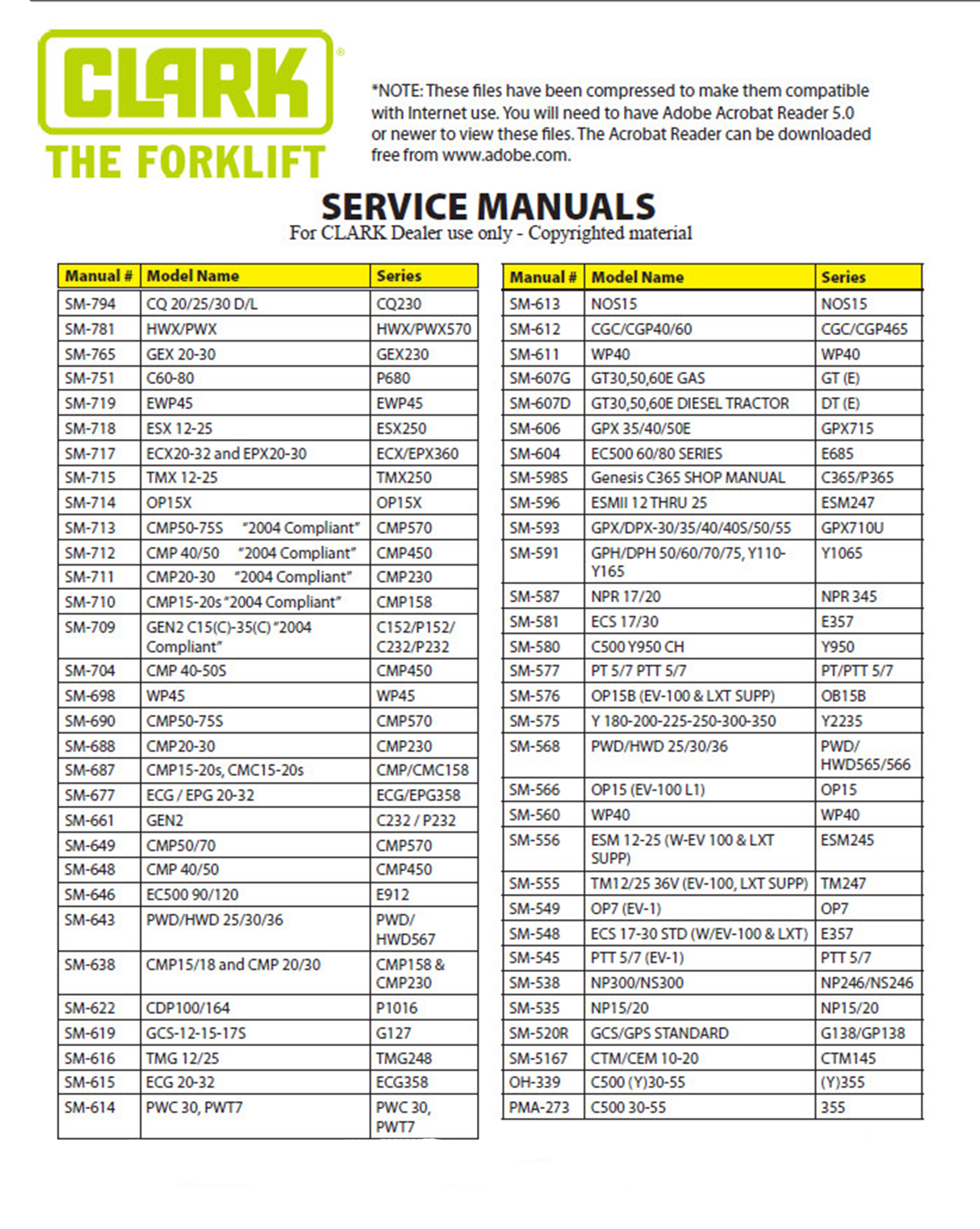 CLARK Service Manual - Руководство поставляется в формате PDF, который может работать под любой операционной системой Windows. Все страницы для печати. Использование данного руководства по ремонту является недорогим способом поддержания правильной работы вашей техники.