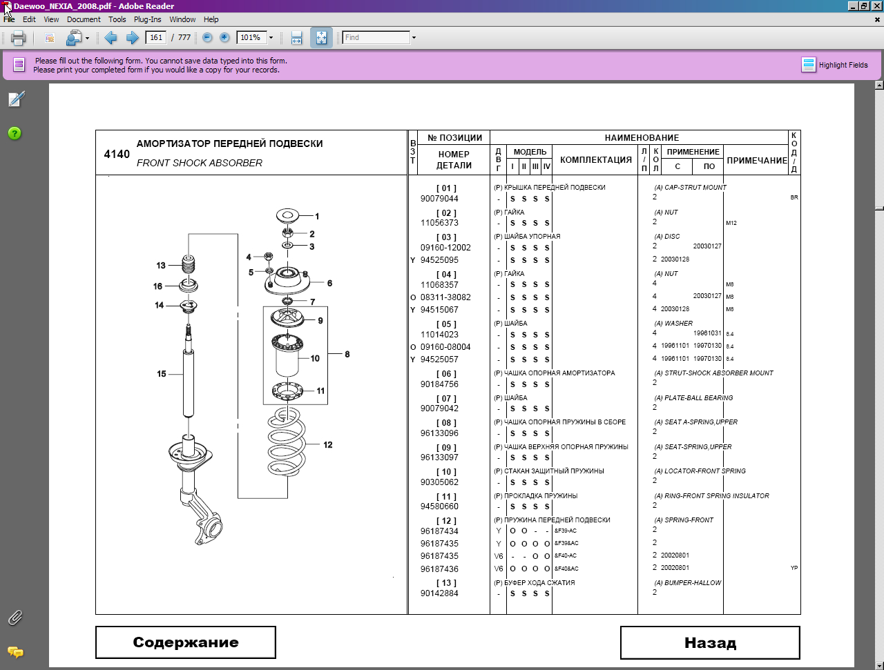 Вашему вниманию представлен каталог запасных частей автомобилей Daewoo Nexia в кузове N100 и N150 и Daewoo Matiz.