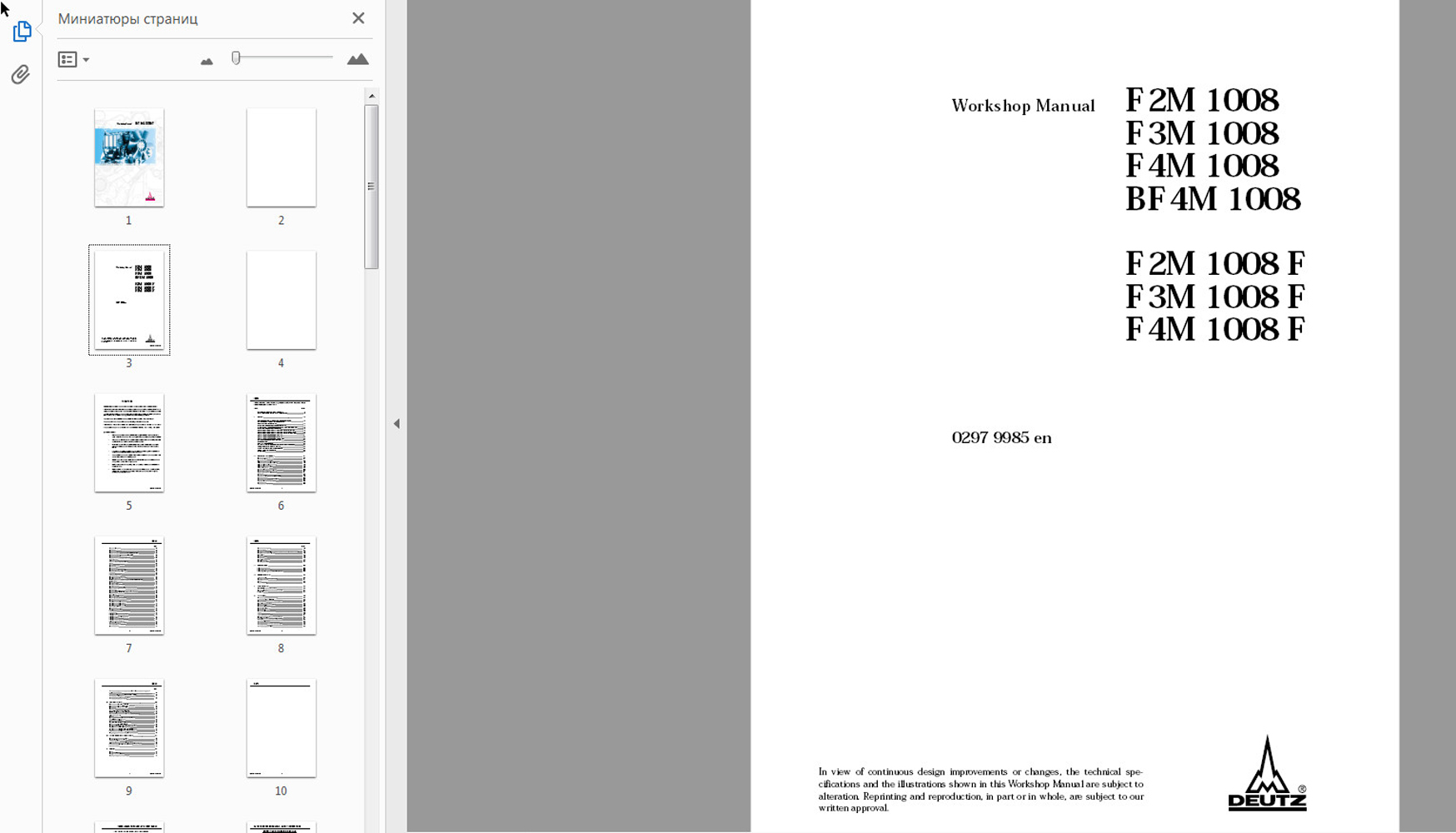 Deutz Manual - Руководство поставляется в формате PDF, которые может работать под любой операционной системой Windows.