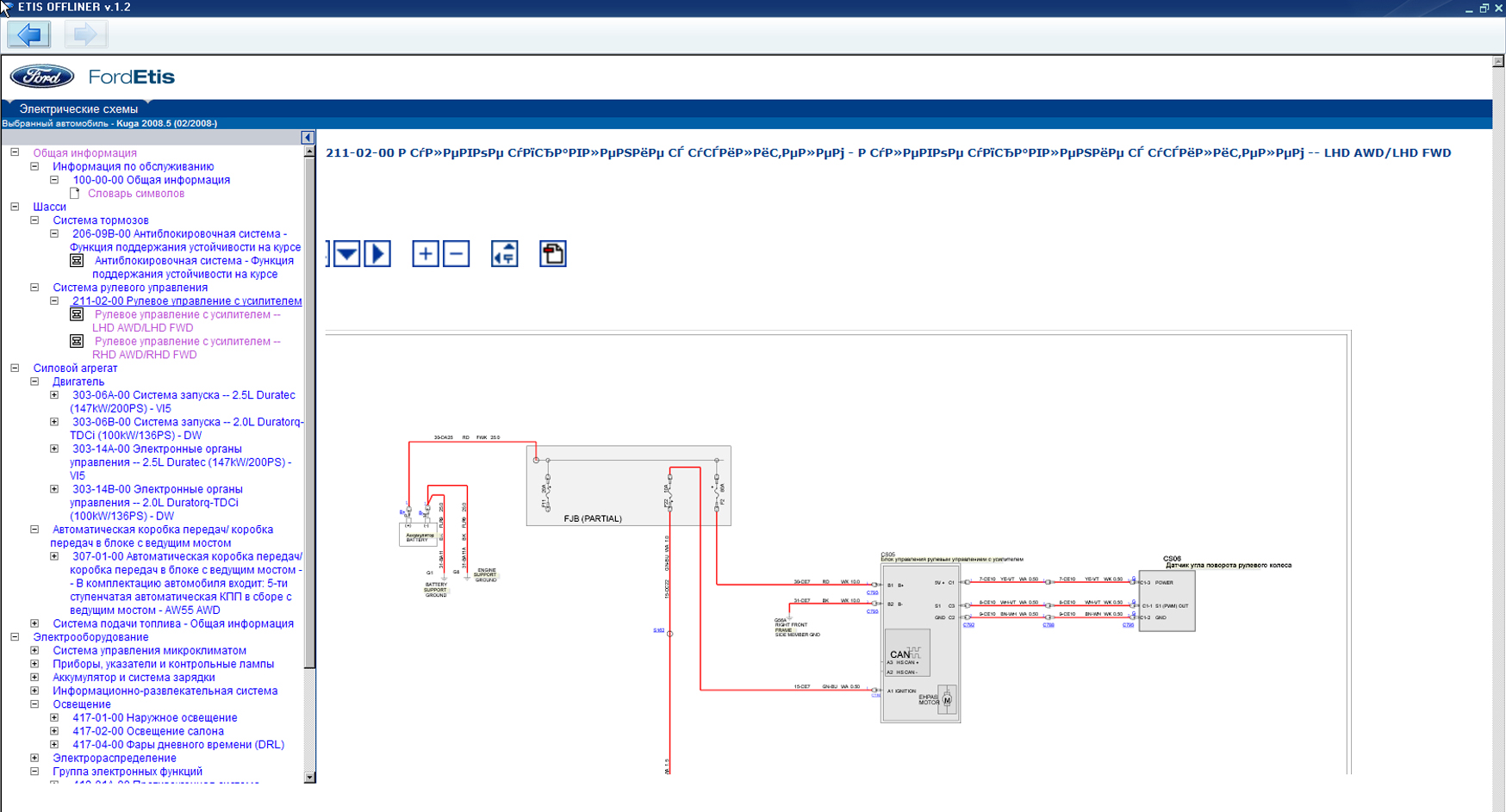 Каталоге Ford ETIS присутствуют электросхемы.