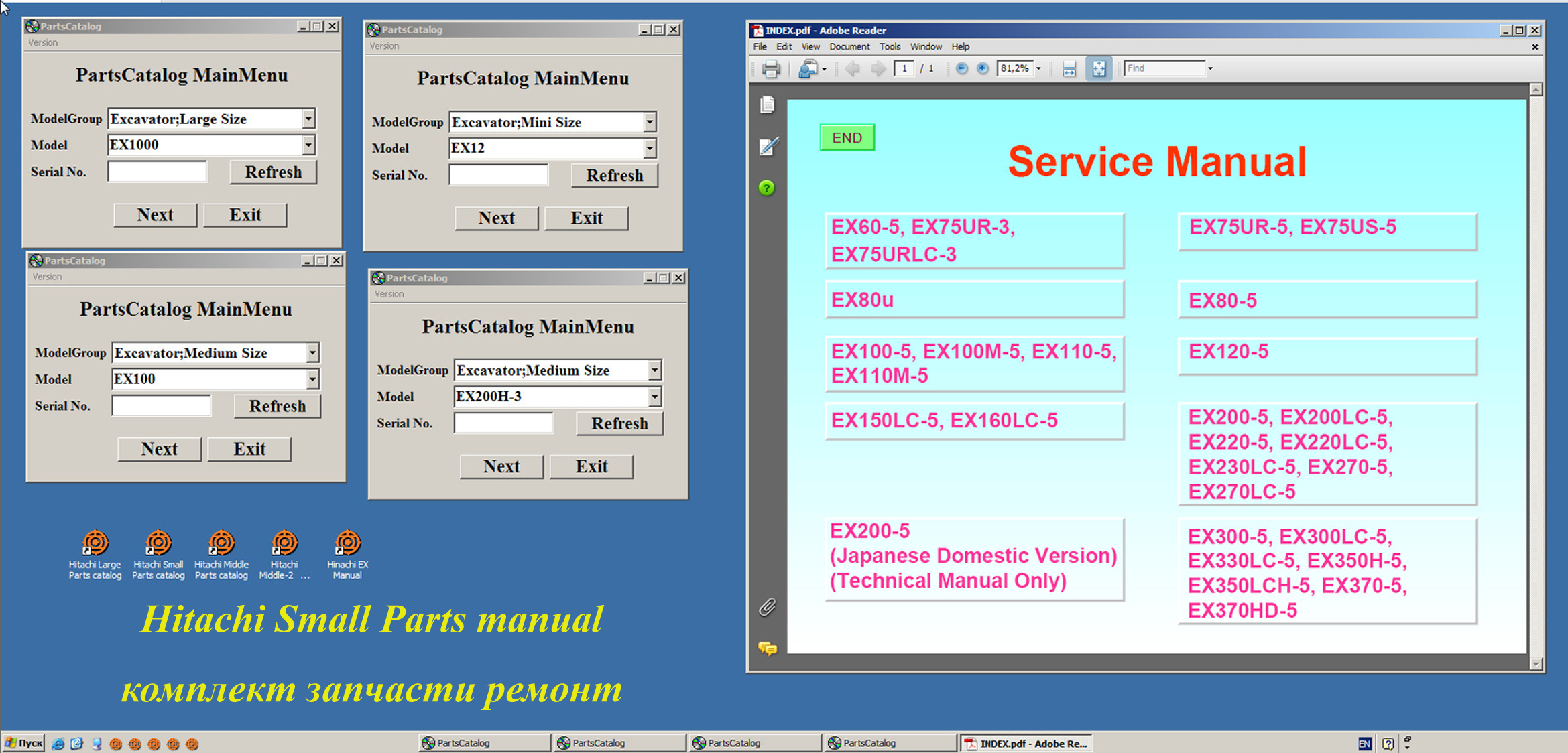 Пример работы с каталогом запчастей Hitachi Excavator Small, Middle :