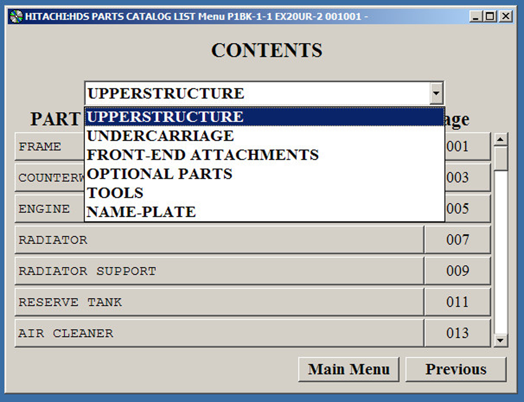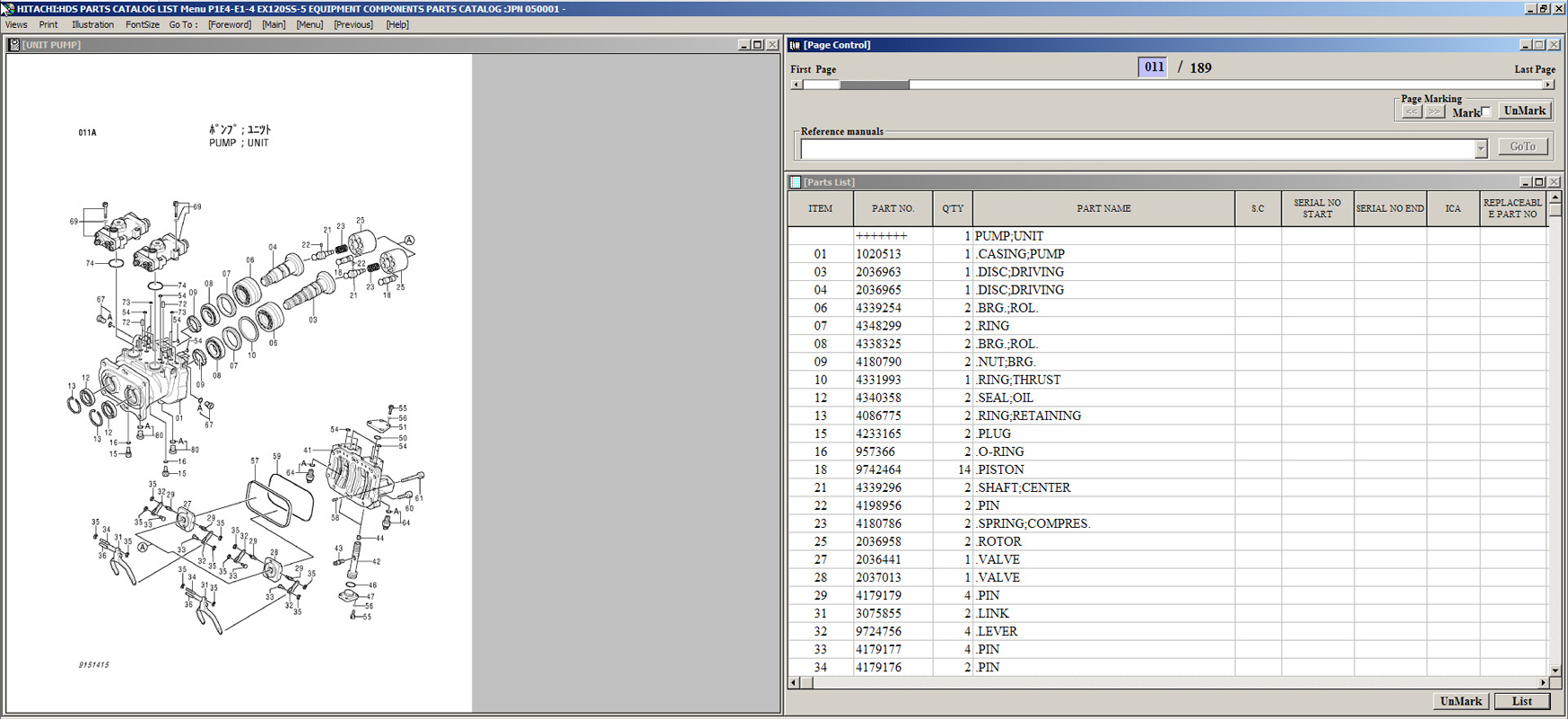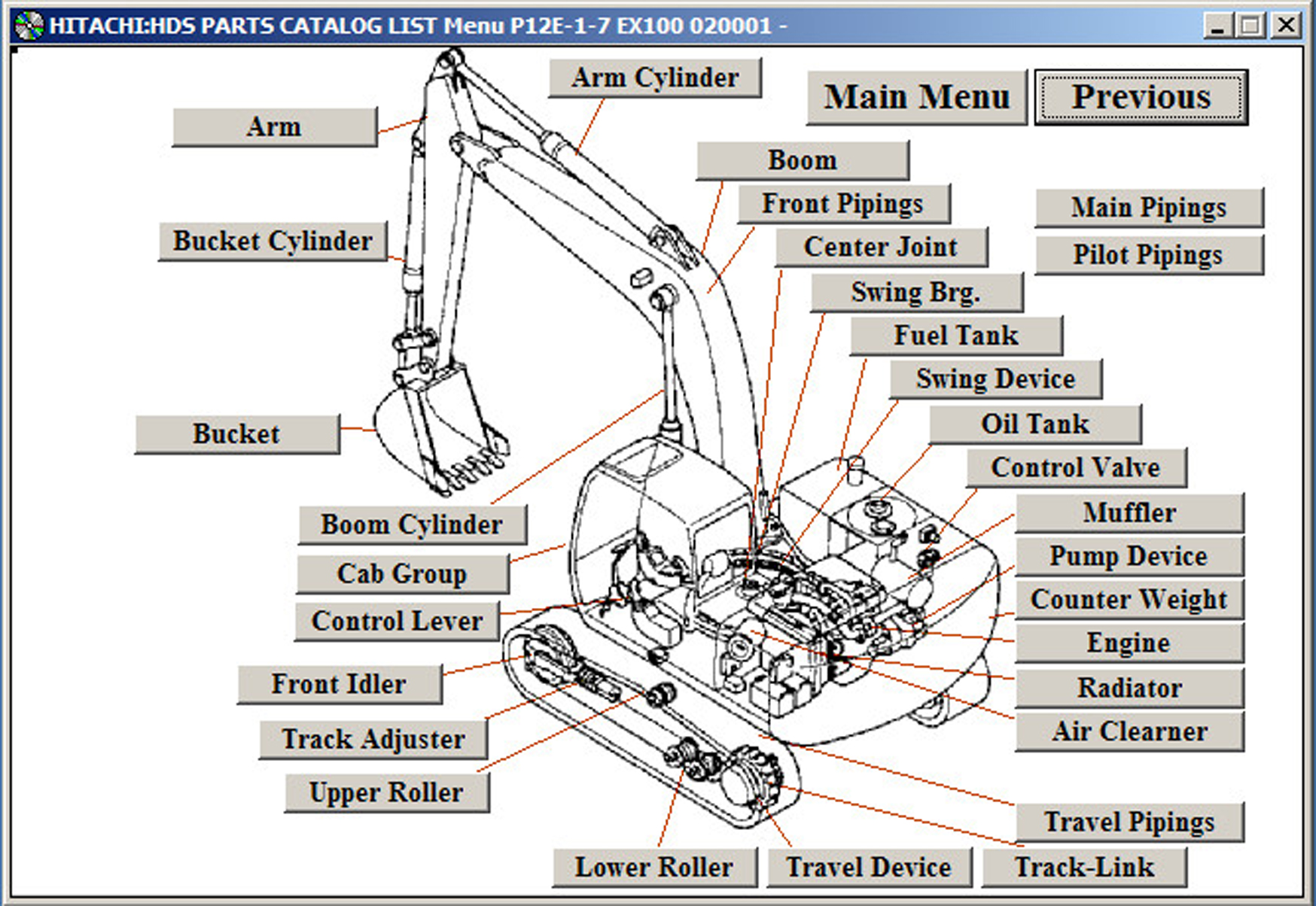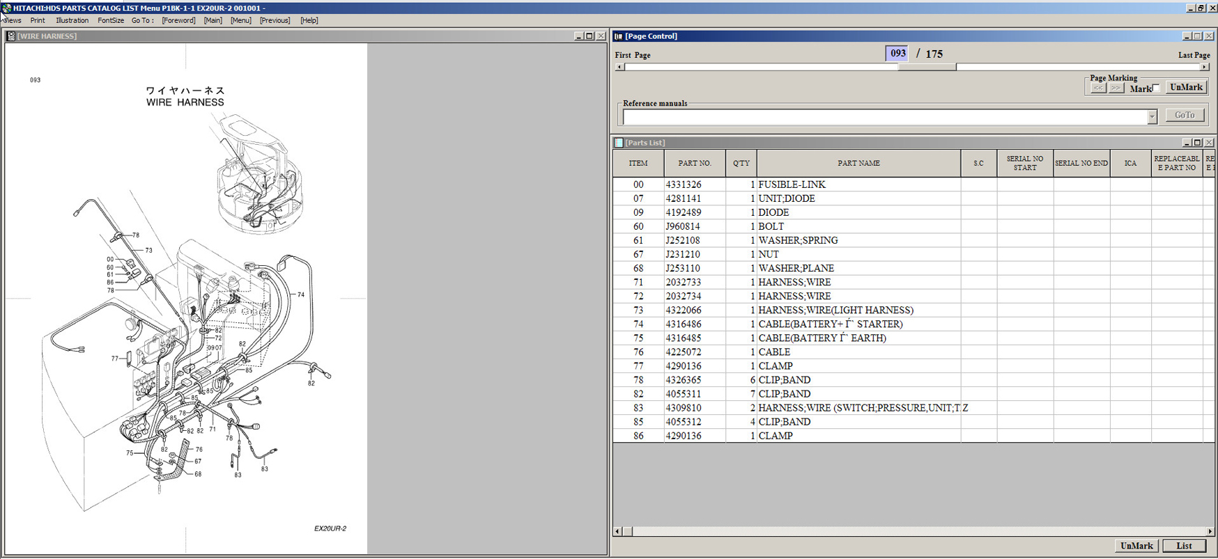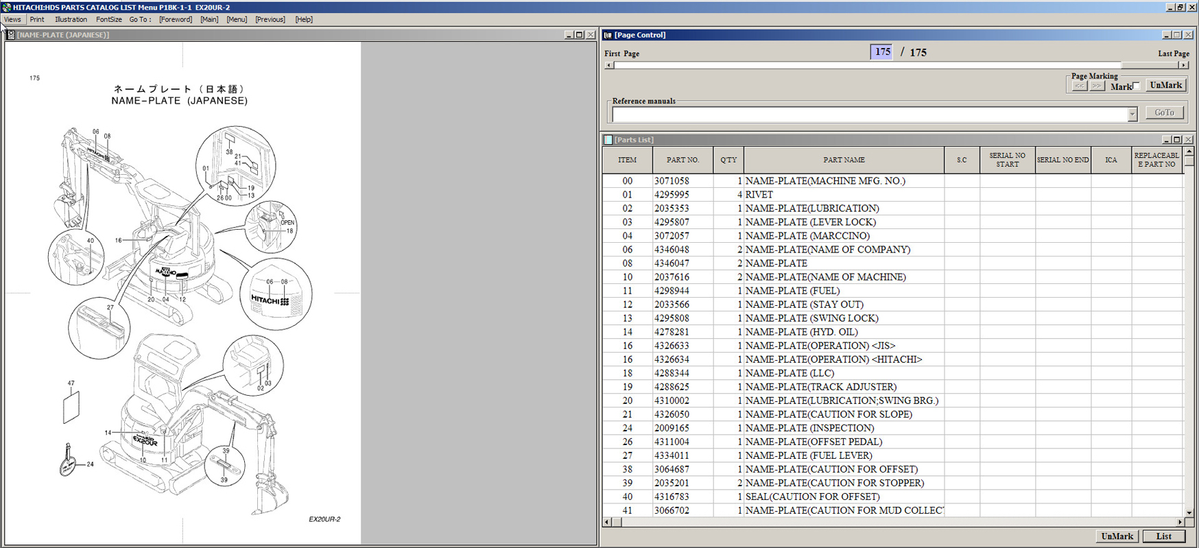 После установки каталога Hitachi Excavator Small пользователь получает доступ к каталожным номерам и технической информации,