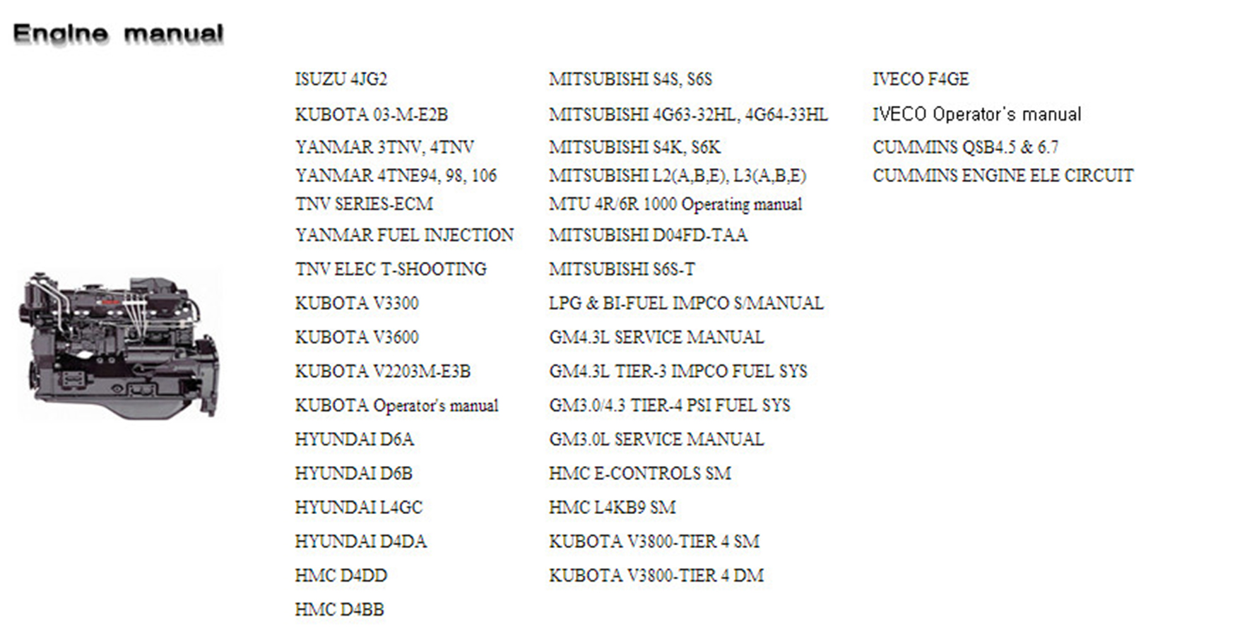 В каталоге Hyundai MANUALS представлена следующая техника: