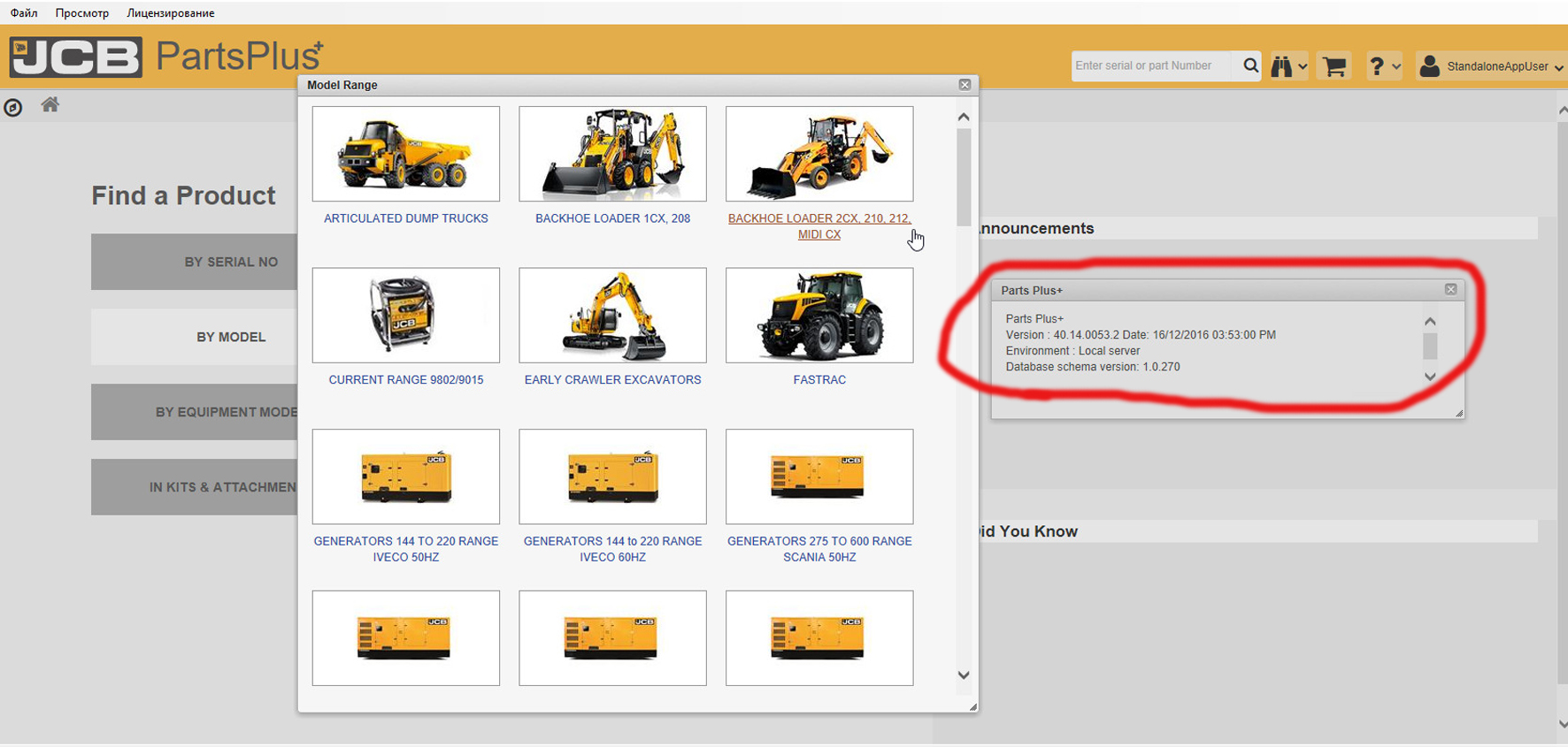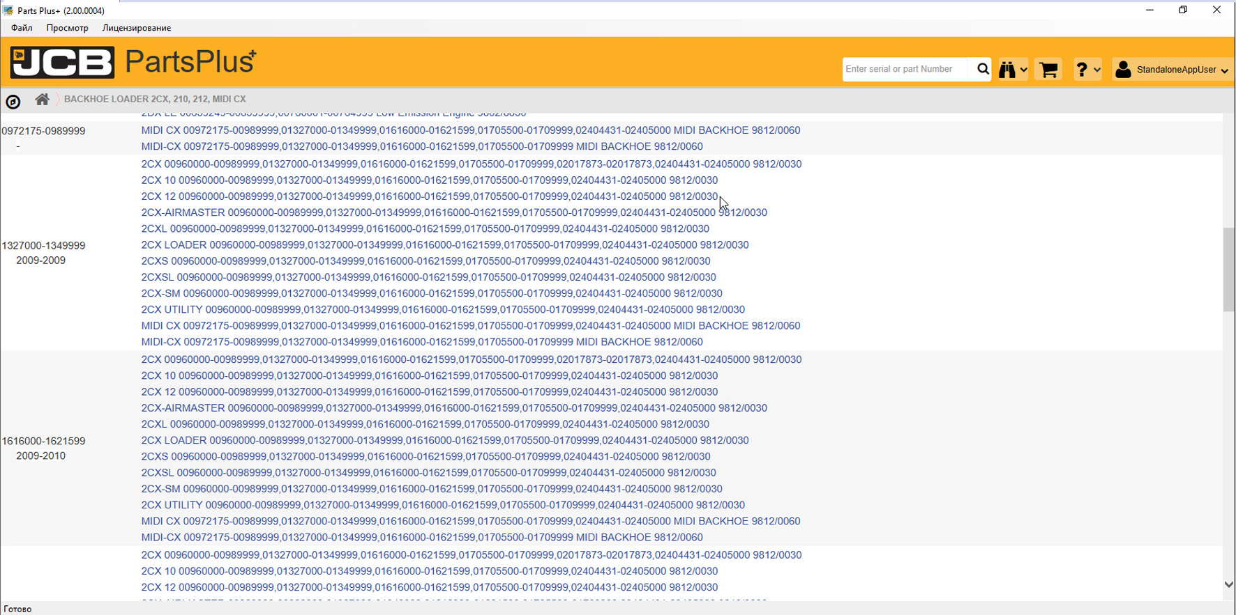 Дата обновления JCB Parts Plus 2.00.0004 - по 01-2017 год