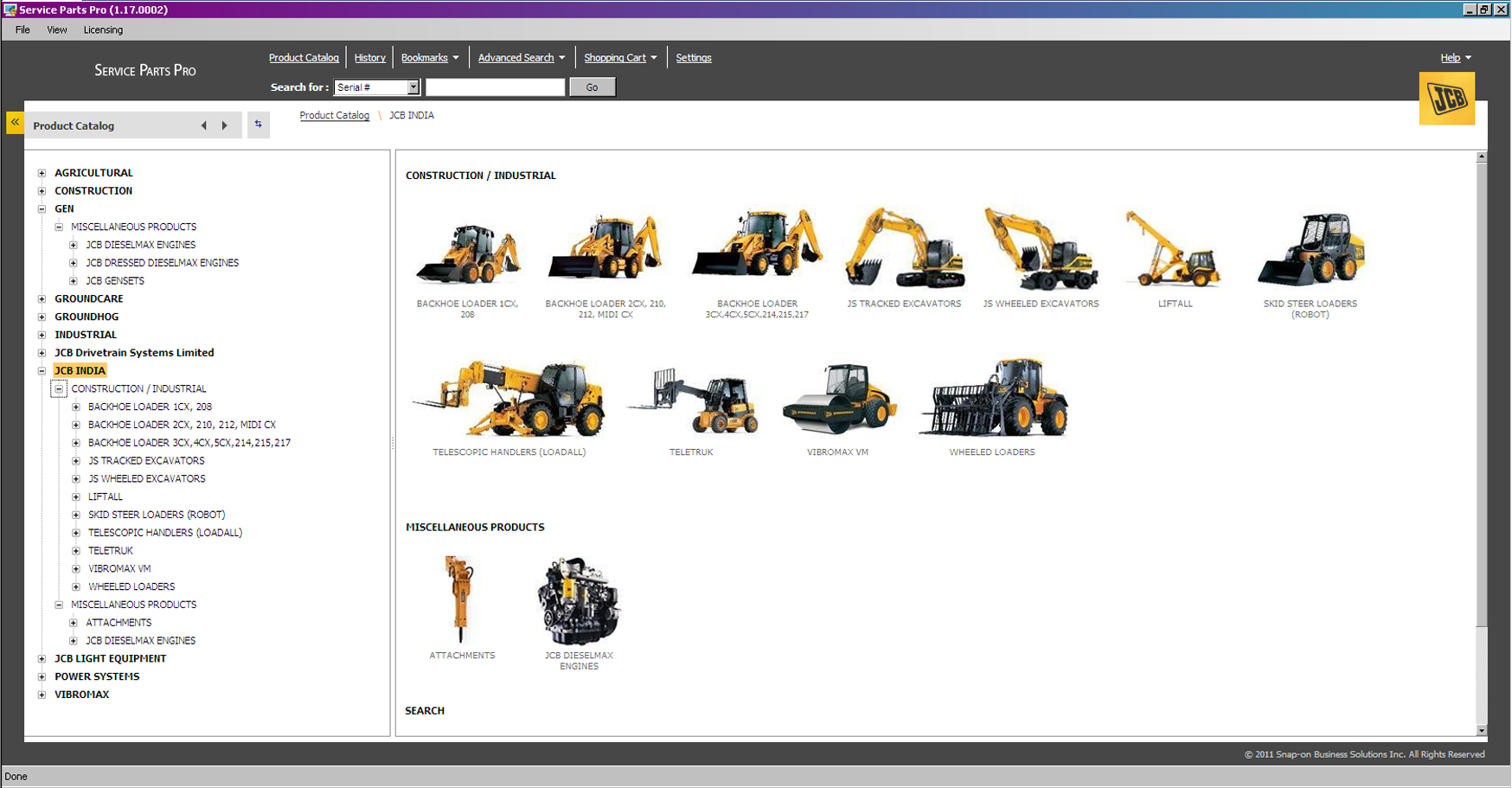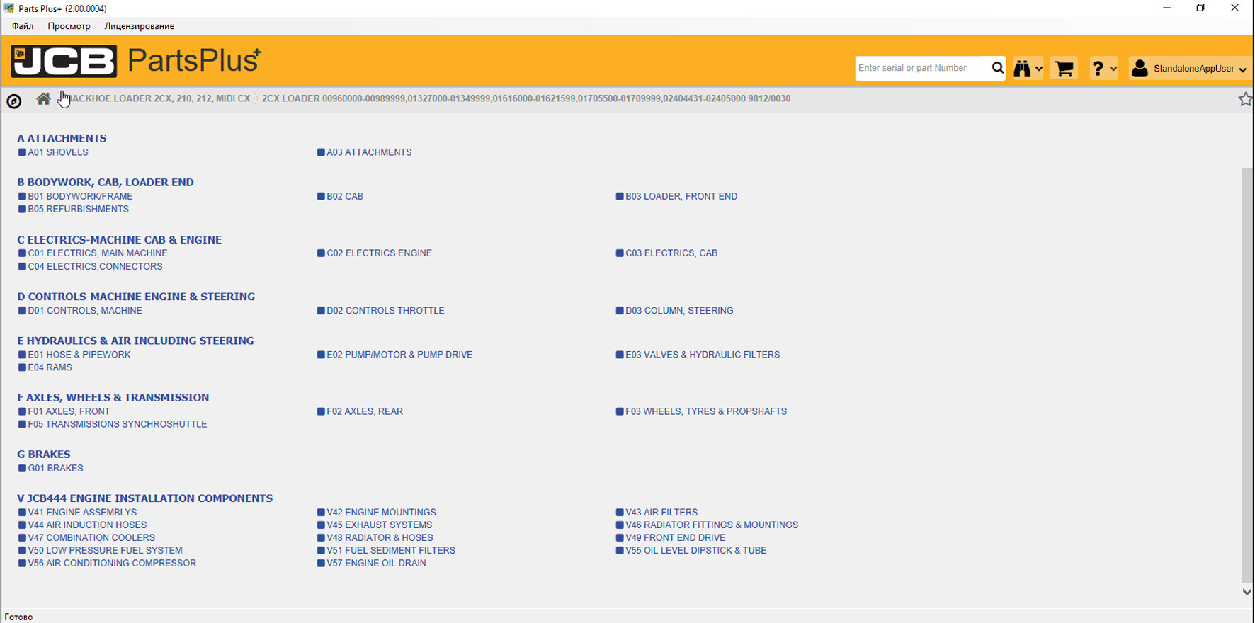 В каталоге JCB Manuals интерфейс каталогаочень простой и удобный, есть поиск по модели, серийному номеру.