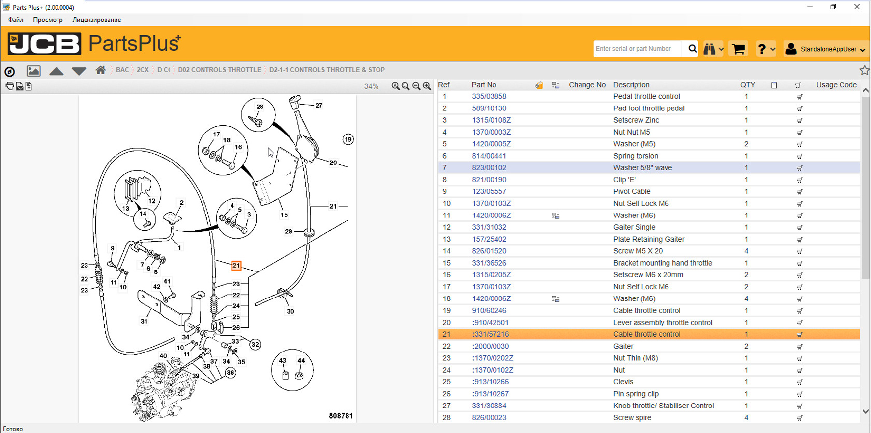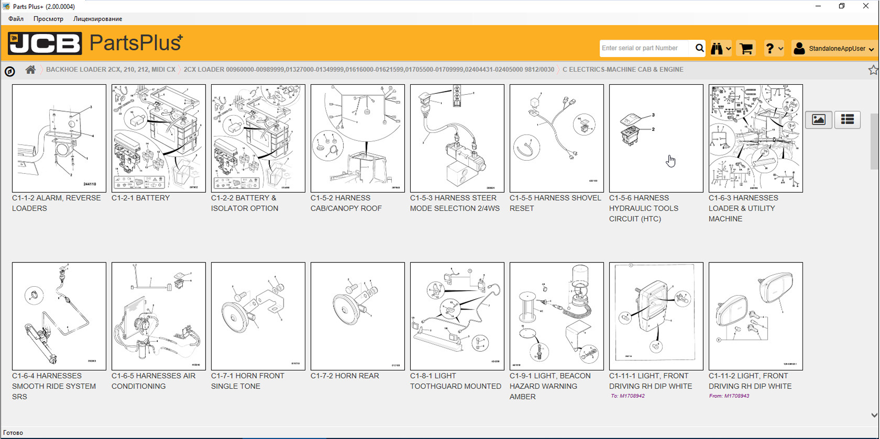 ПРИМЕР РАБОТЫ С КАТАЛОГОМ JCB Parts Plus: