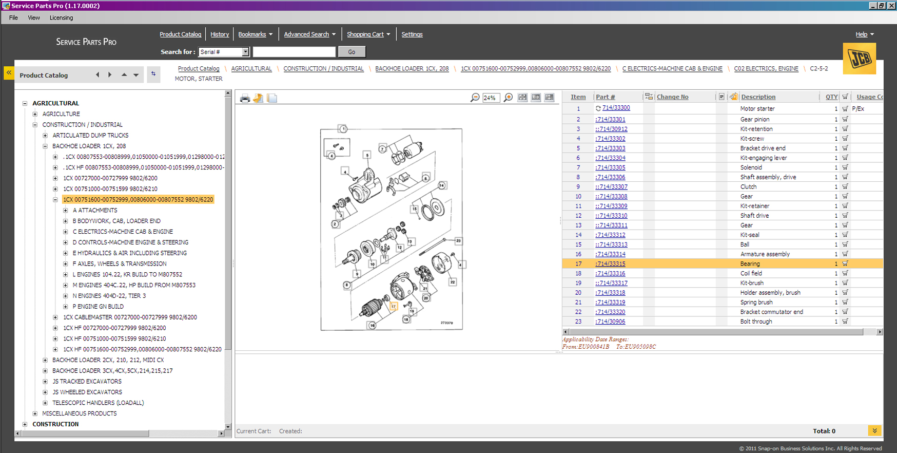 Стоимость каталога JCB Parts Plus 01-2017 только определения оригинального номера запчасти - 9000 руб