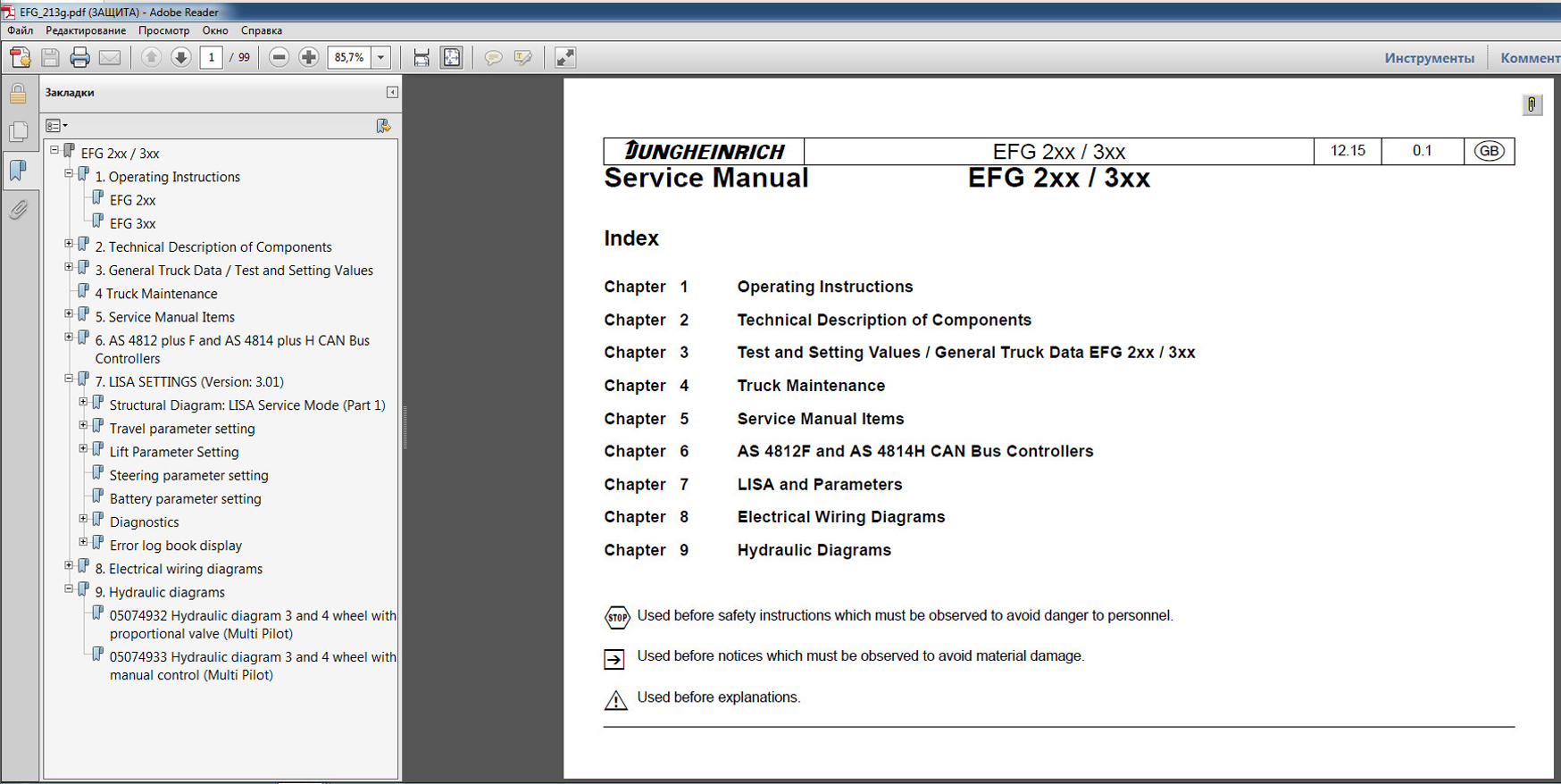 JUNGHEINRICH service manuals содержит пошаговые инструкции по ремонту различных элементов систем, электросхемы, схемы расположения компонентов электрооборудования, распиновка разъемов, гидравлические схемы,