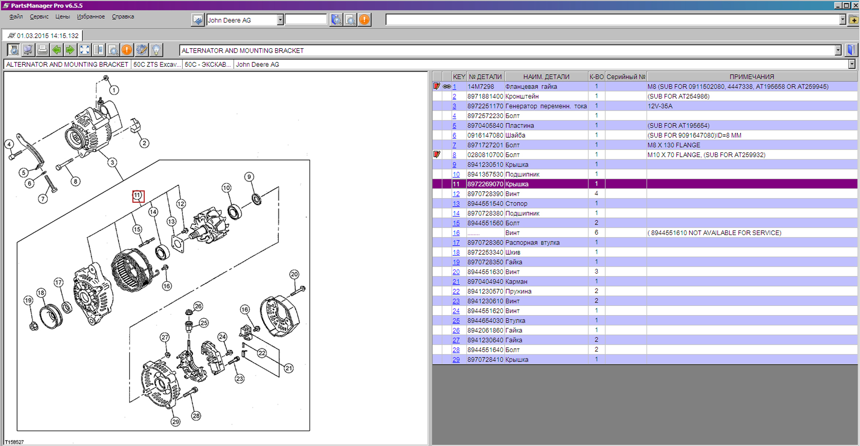 Каталог запчастей John Deere содержит информацию;