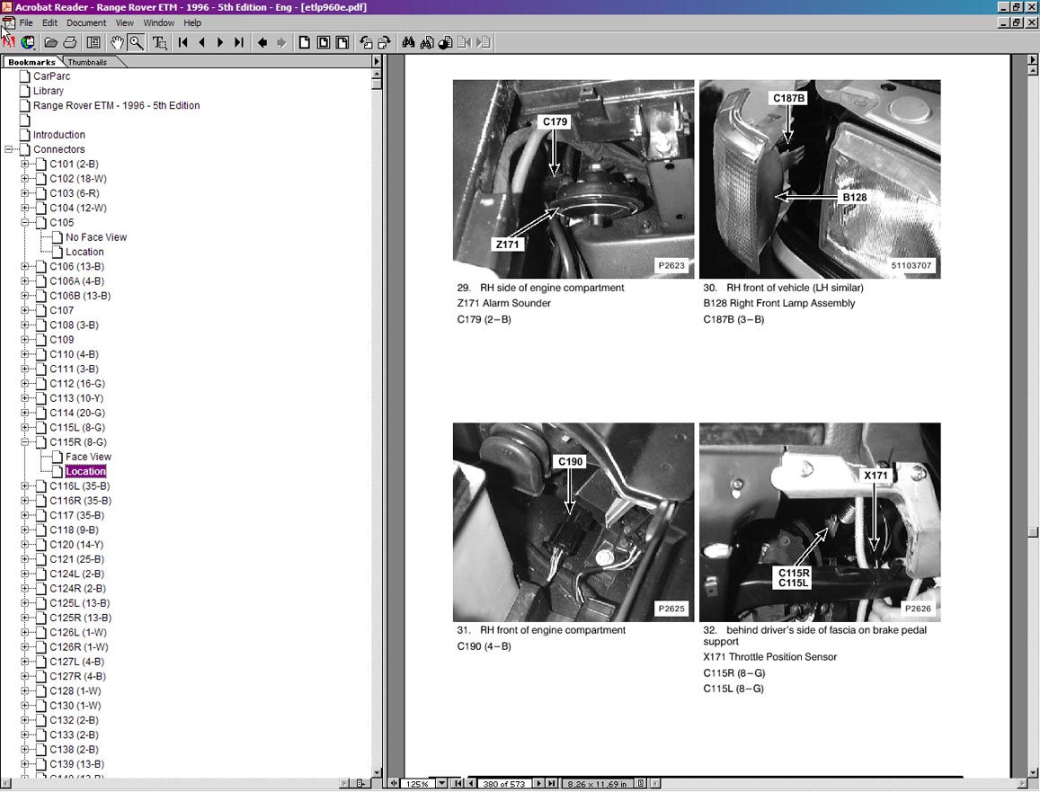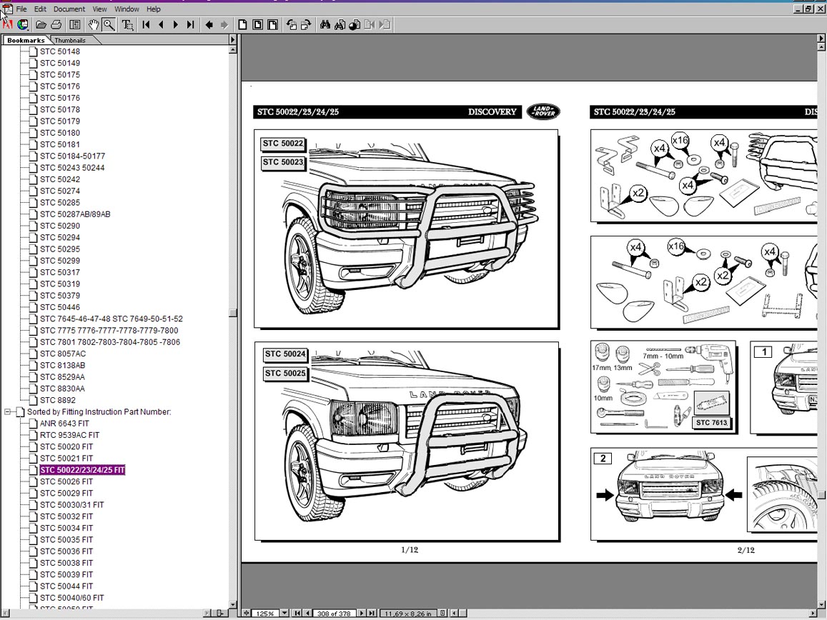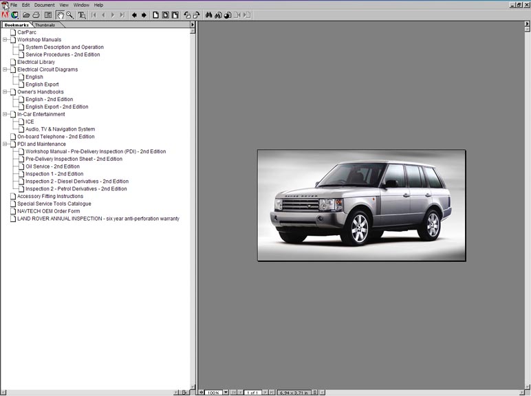 Интерфейс программы Land Rover Technical Data (RAVE) построен на базе Adobe Acrobat Reader и не вызывает затруднений при работе.