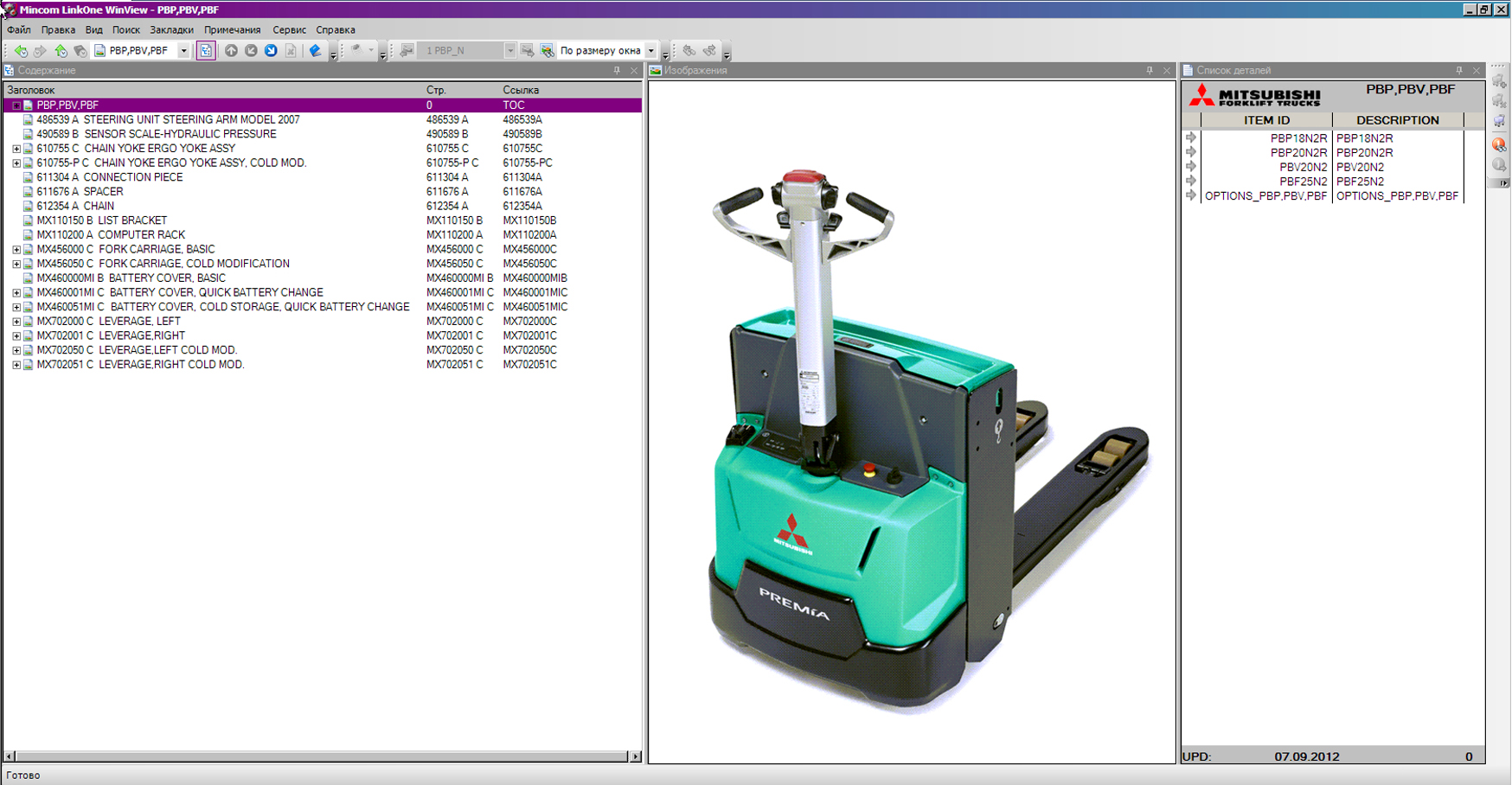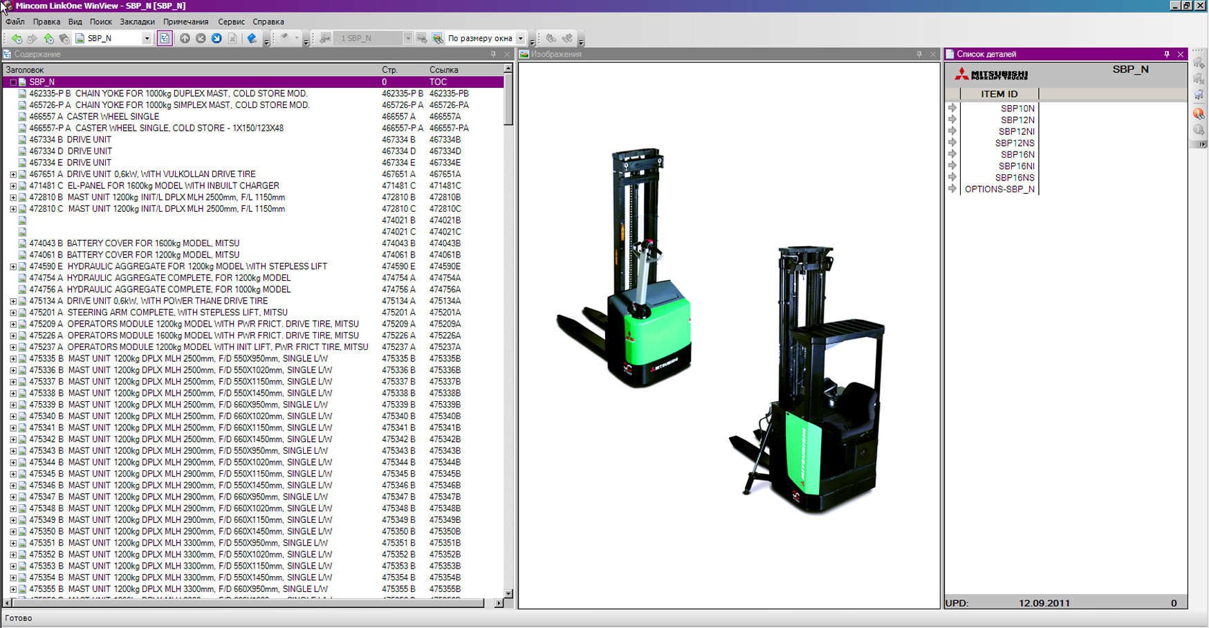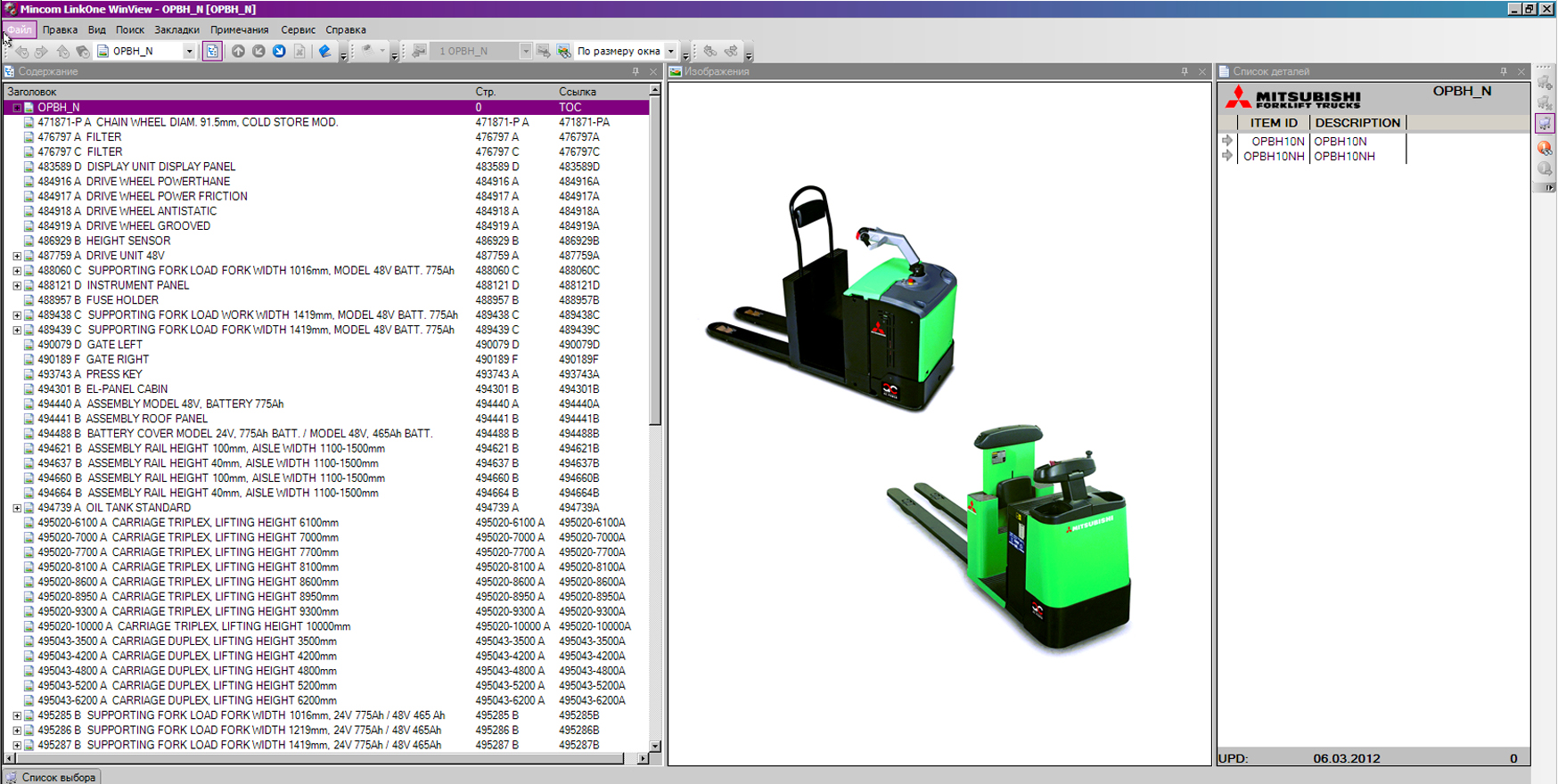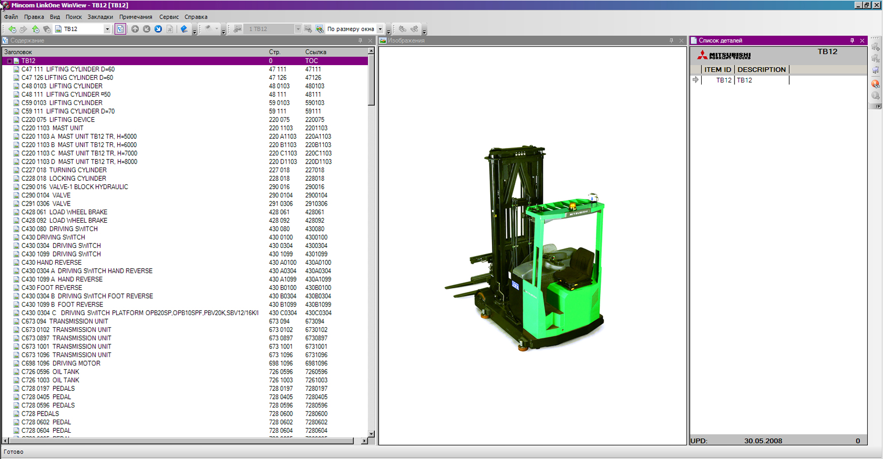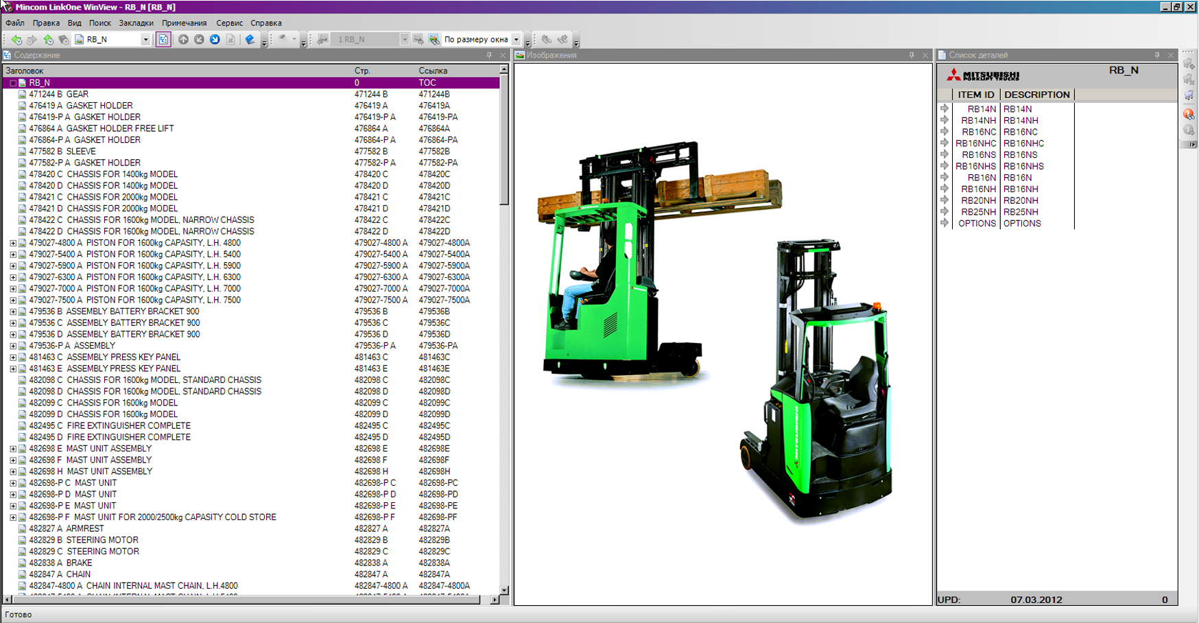 Каталог запчастей Mitsubishi Warehouse это электронный каталог запасных частей, содержащий полную техническую информацию о запасных частях для складского оборудования Mitsubishi.