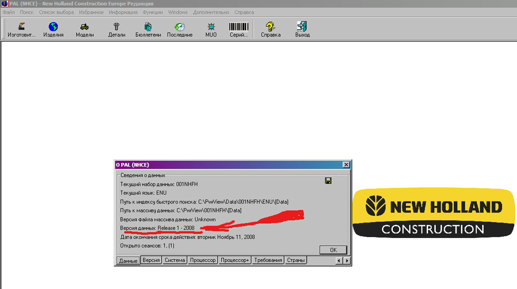 Пример работы с с каталогом New Holland Construction 2008: