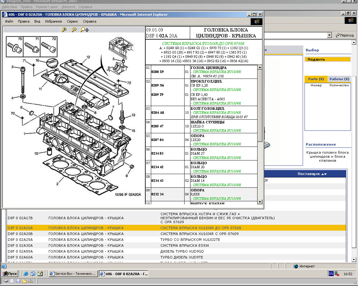 каталог Peugeot Parts установлен на виртуальную машину