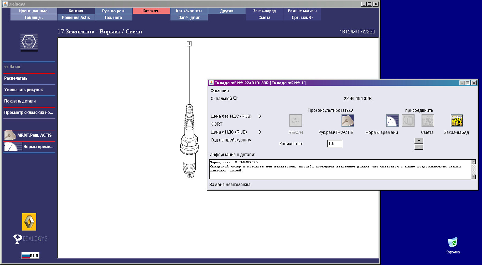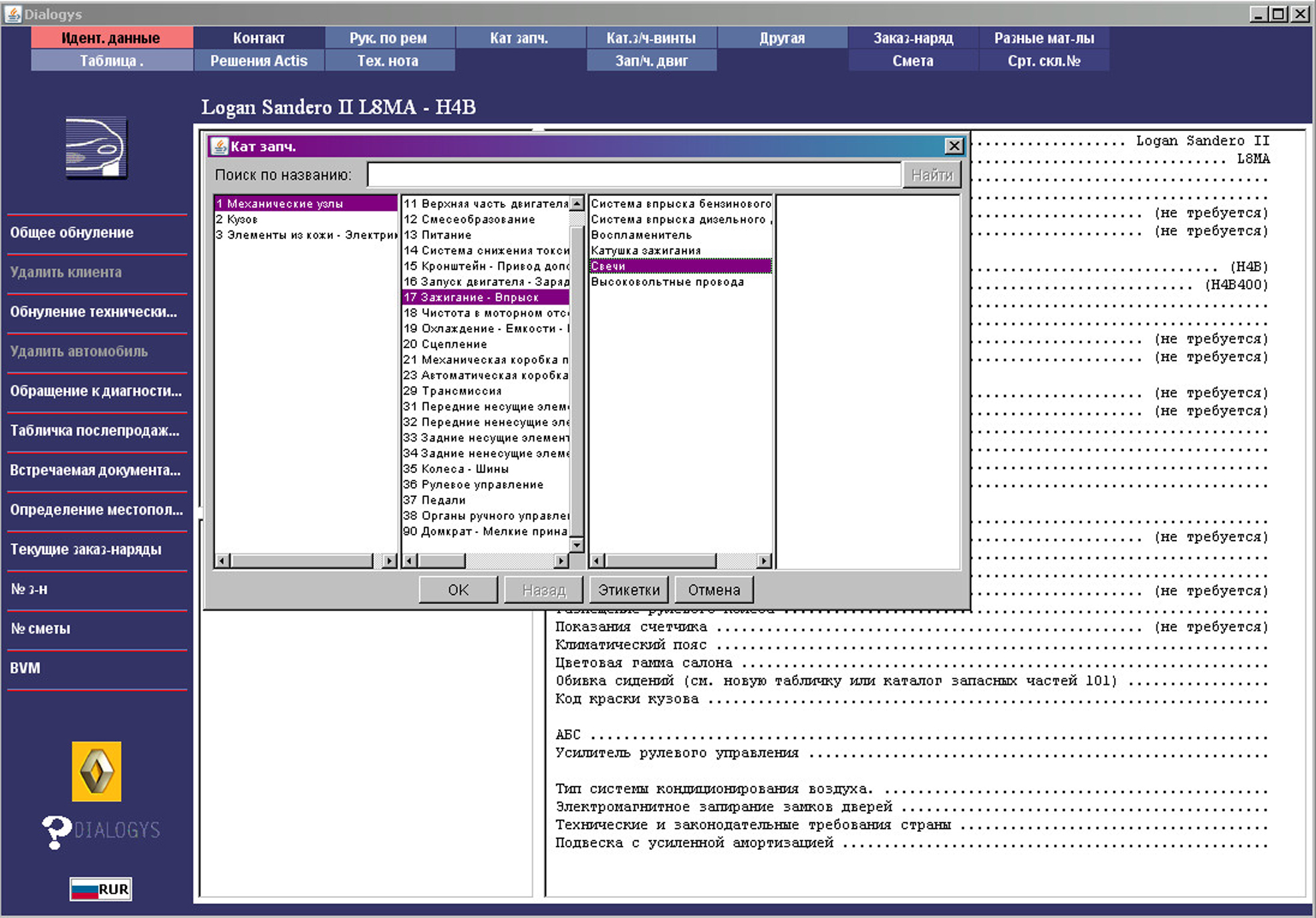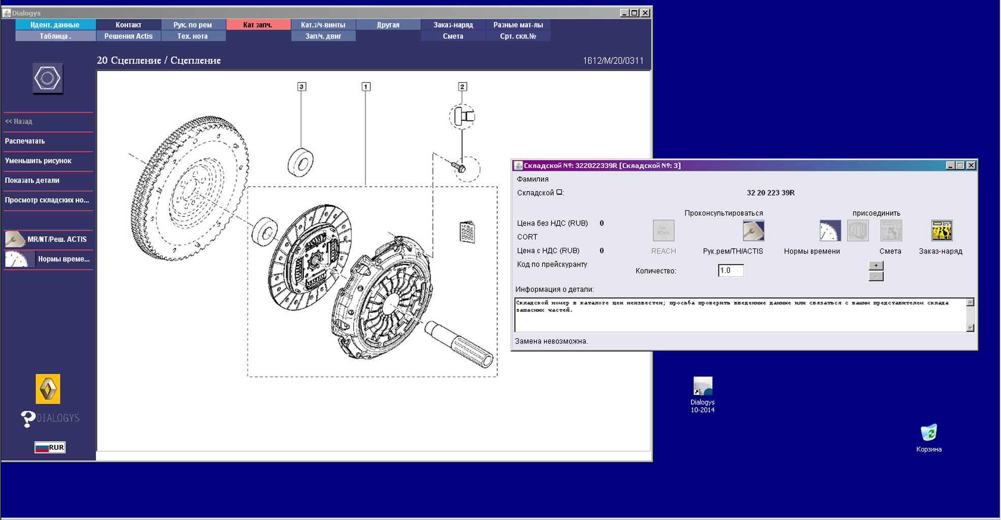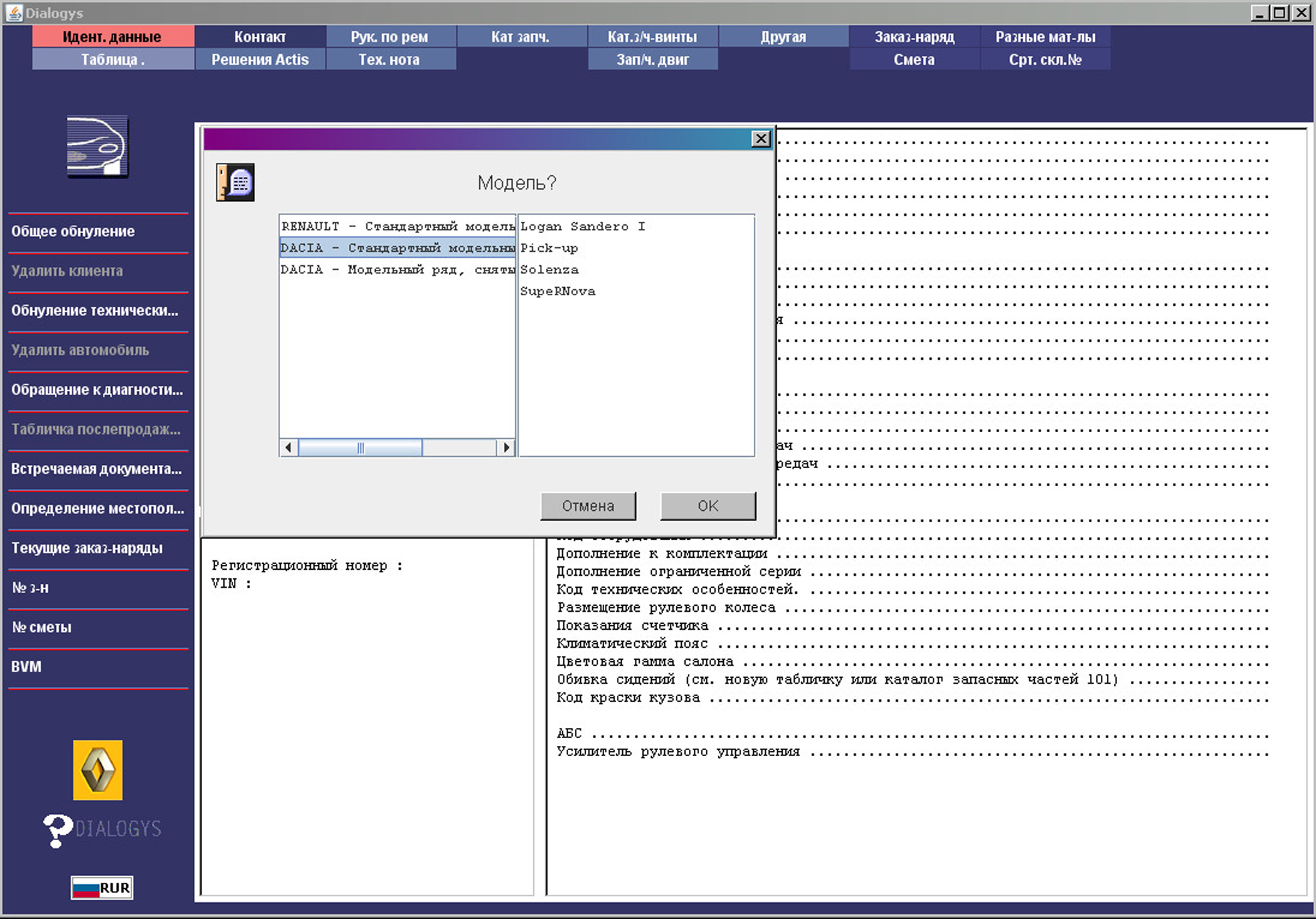 Пример работы с каалогом Renault Dialogys: