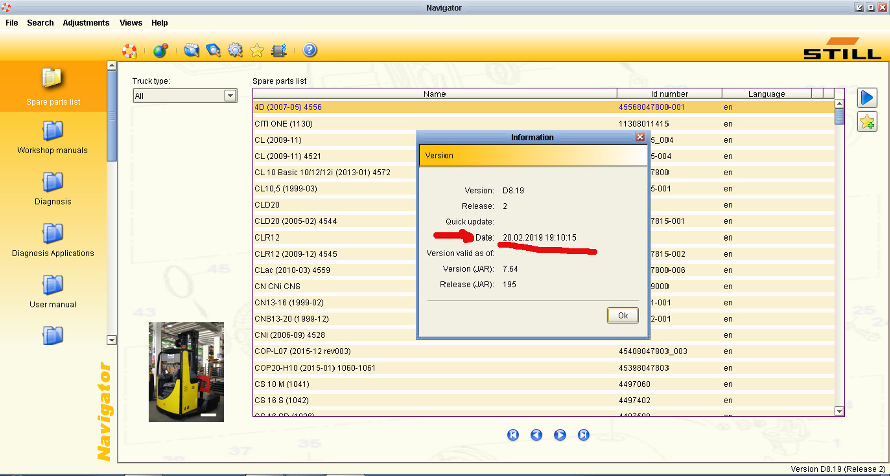 Стоимость каталога STILL Steds Forklifts 8.19 Каталог запчастей,