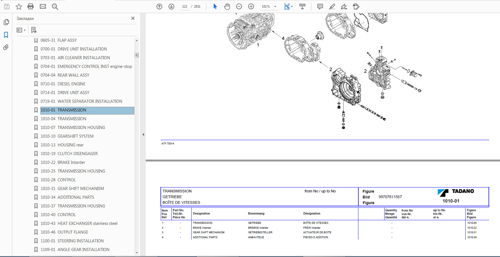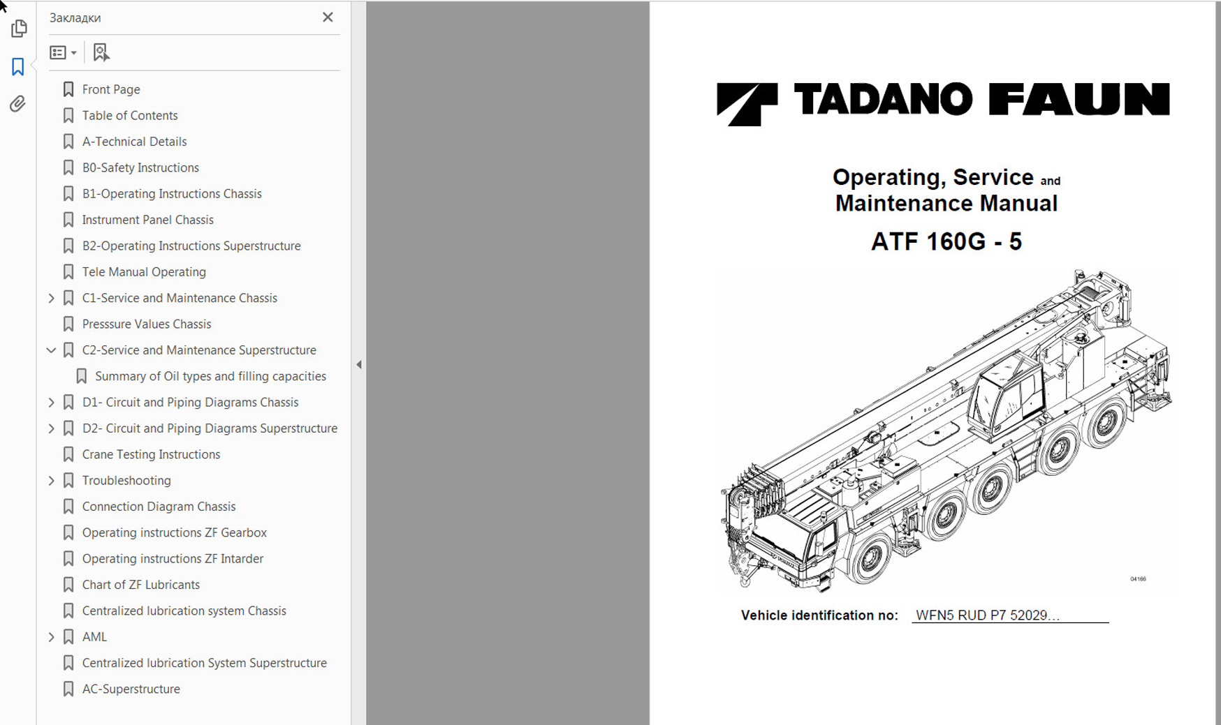 Пример работы с TADANO Service Manual: