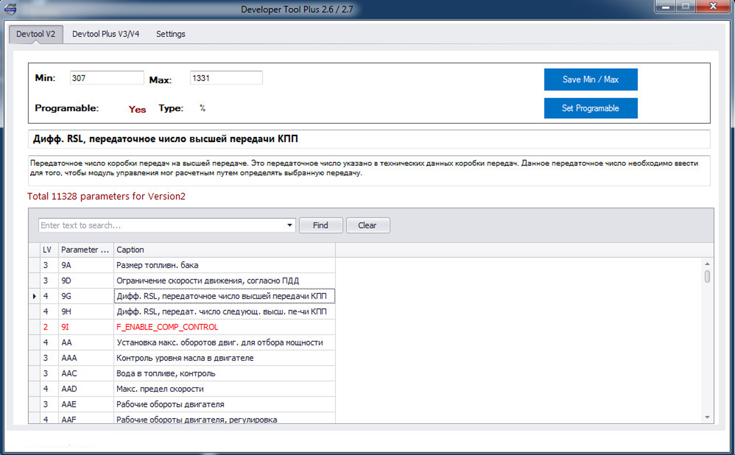 Изменение минимальных и максимальных значений параметров, например: увеличение лимита скорости; Vovlo Tech Tool поддерживает: EURO 3, EURO 4, EURO 5, EURO 6;