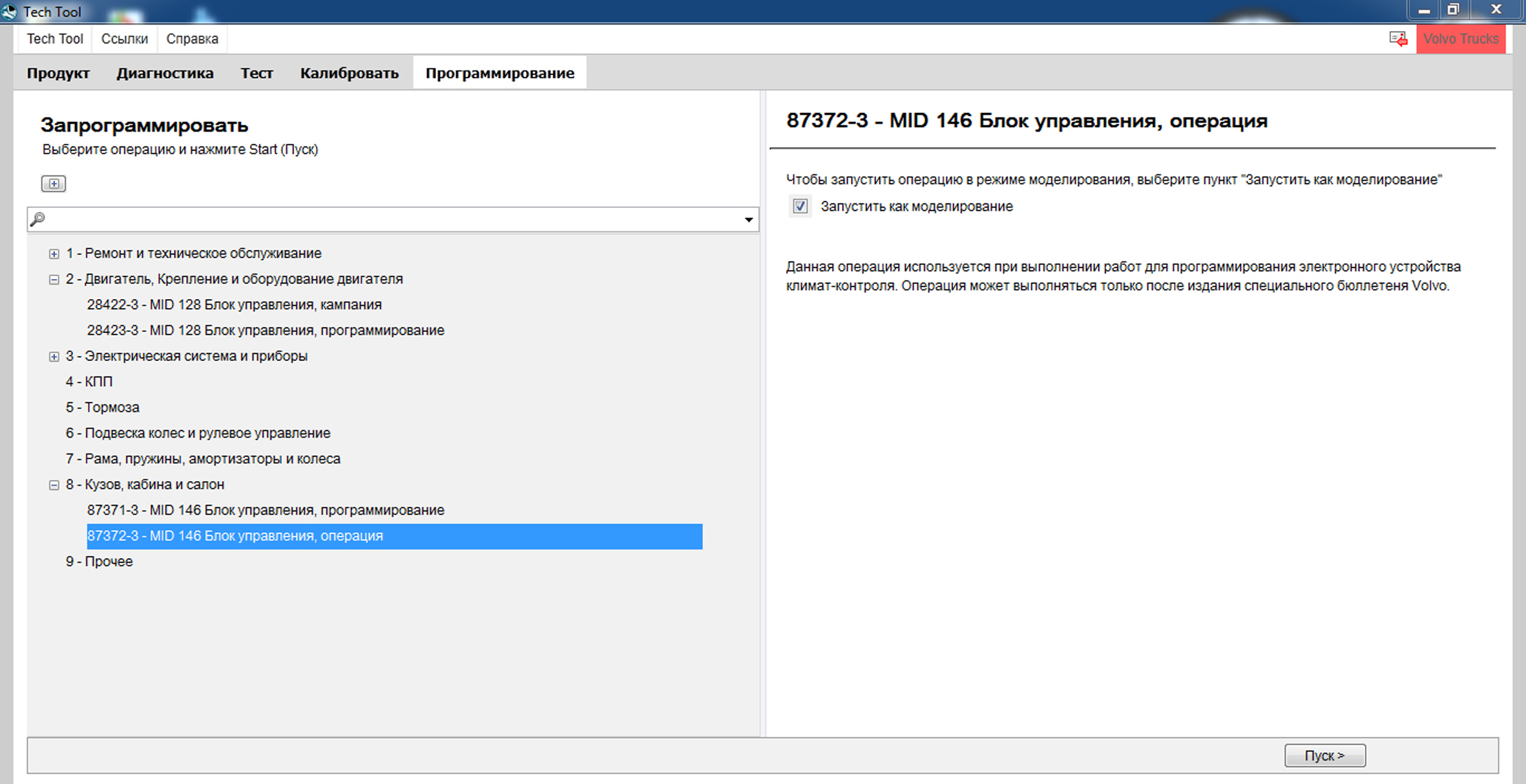 с использованием программы Volvo Tech Tool.