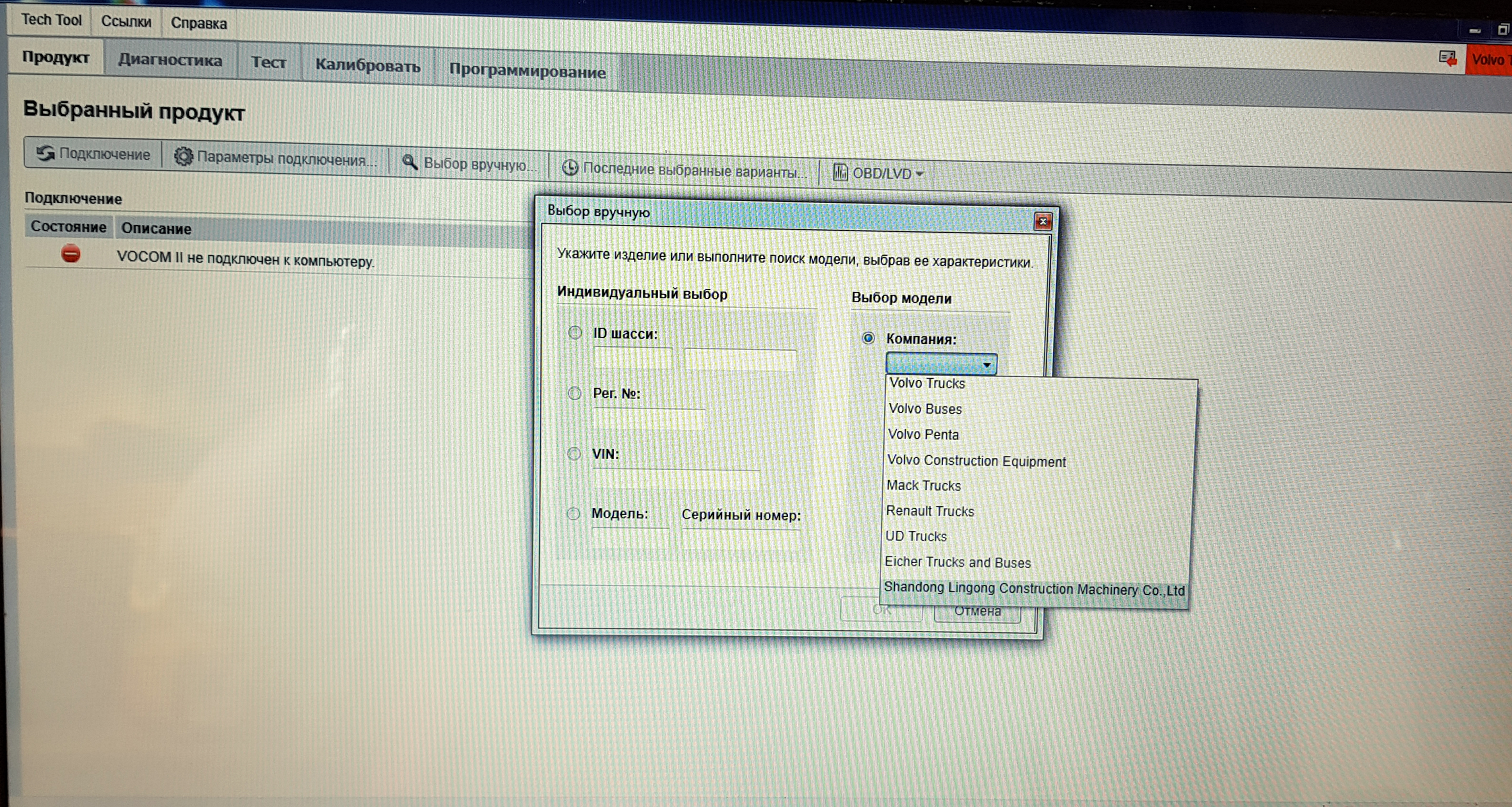 Volvo Tech Tool - программа работает с диагностическим сканером