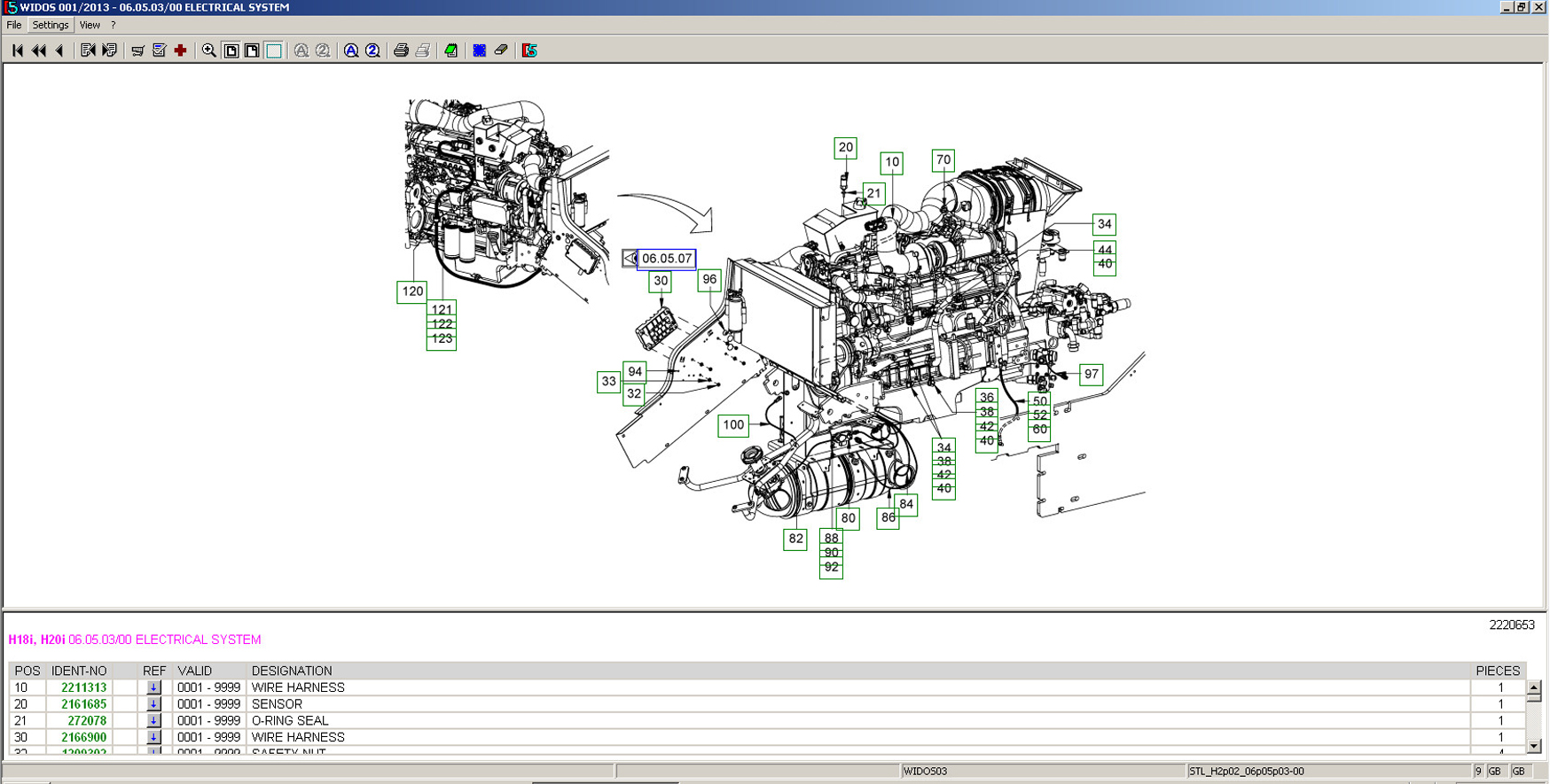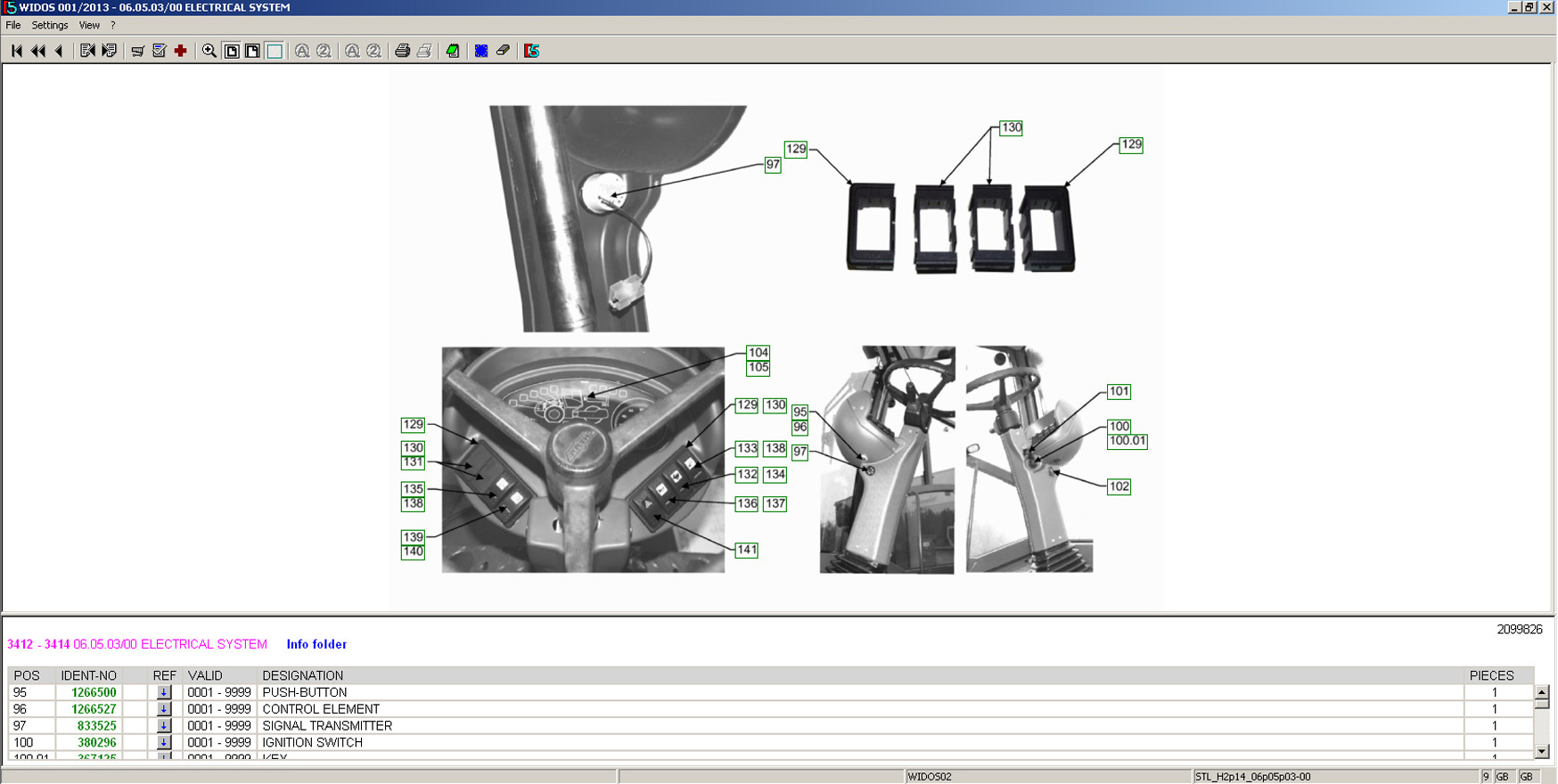 Интерфейс каталог запчастей и документация по ремонту Widos Wirtgen Group (Видос)