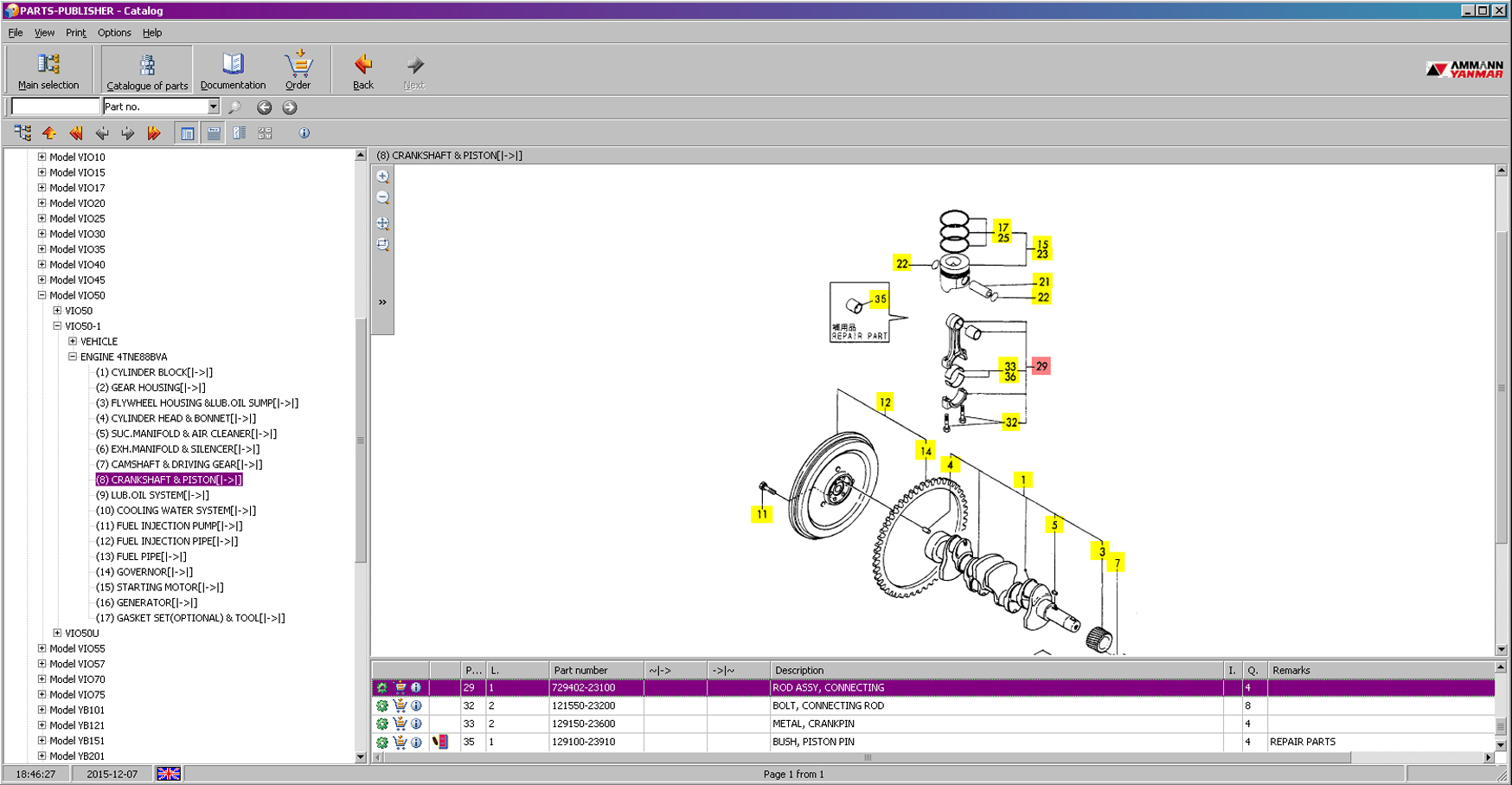 После установки каталога Yanmar пользователь получает доступ к технической информации, а именно пользователь может искать запчасти по модели и по серийному номеру.