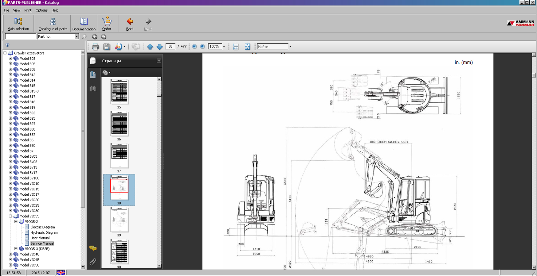 В каталоге Yanmar (Янмар) возможен поиск по серийному номеру двигателя или по серийному номеру техники или выбор по модели. В каталоге Yanmar представлена вся строительная техника Yanmar (Янмар), а также двигатели Янмар. Кроме того каталоге запчастей Yanmar еще представлены электросхемы, схемы гидравлики.