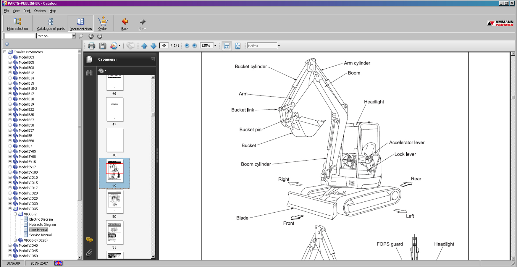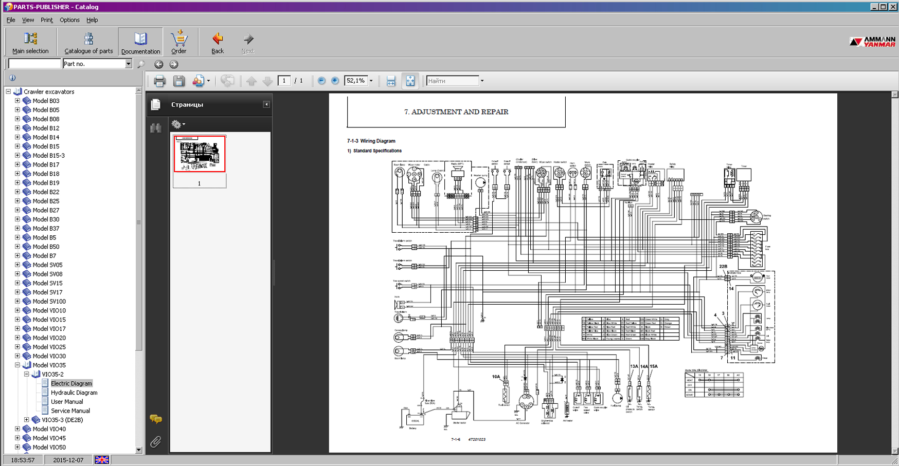 Интерфейс каталога Yanmar является очень простым и удобным.