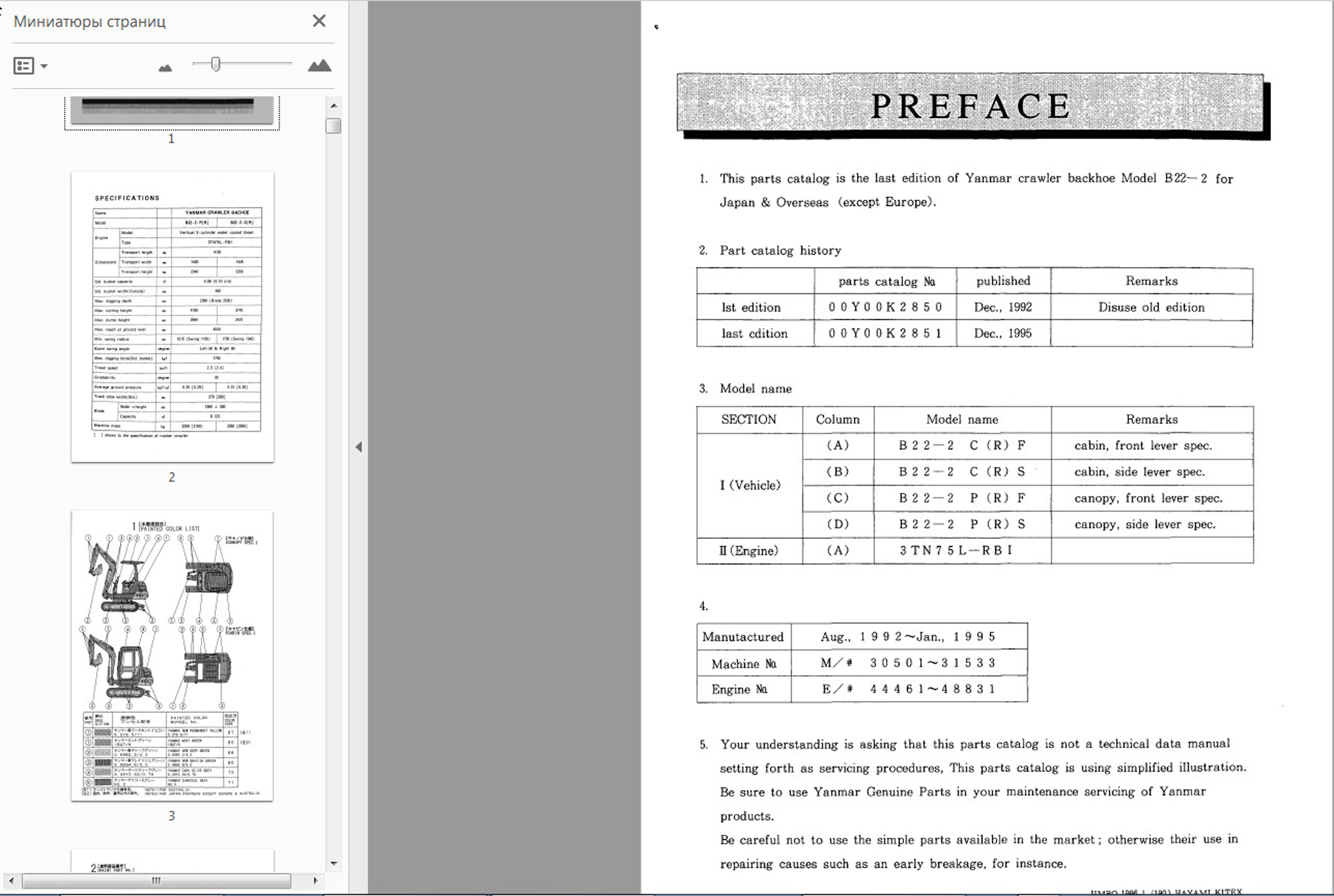 Интерфейс каталога Yanmar является очень простым и удобным формат PDF.