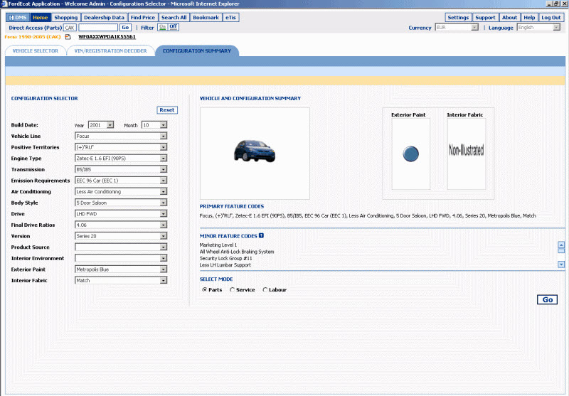 Каталог запчастей используется и является дилерской каталог Ford ECAT значительно повышает эффективность повседневной работы специалистов