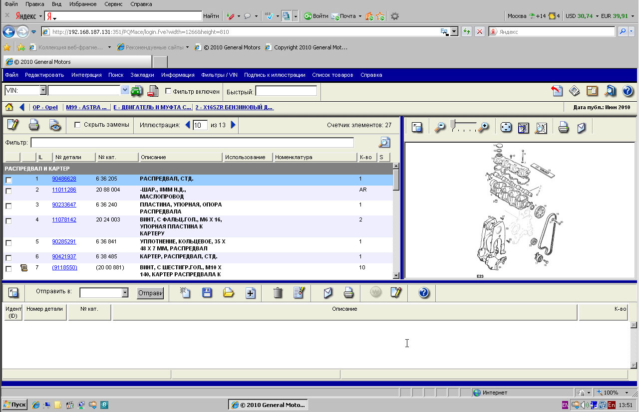 Рабочее разрешение каталога экрана 1024x768, каталог запчастей OPEL так же работает при разрешении 800x600, но окно выбора подгрупп при таком разрешении частично не доступно.
