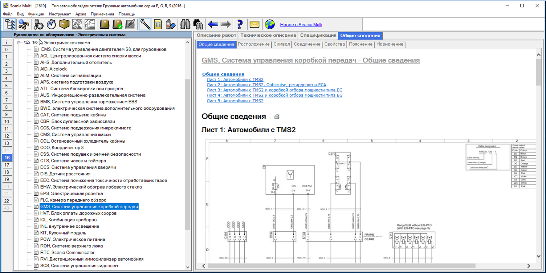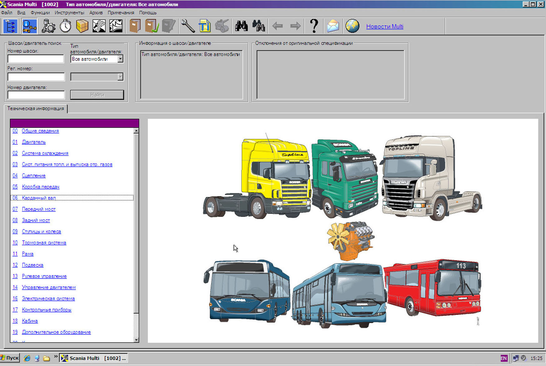 В каталоге Scania Multi по ремонту информация разбита на разделы, в которых вы можете найти информацию по типу автомобиля и двигателю.