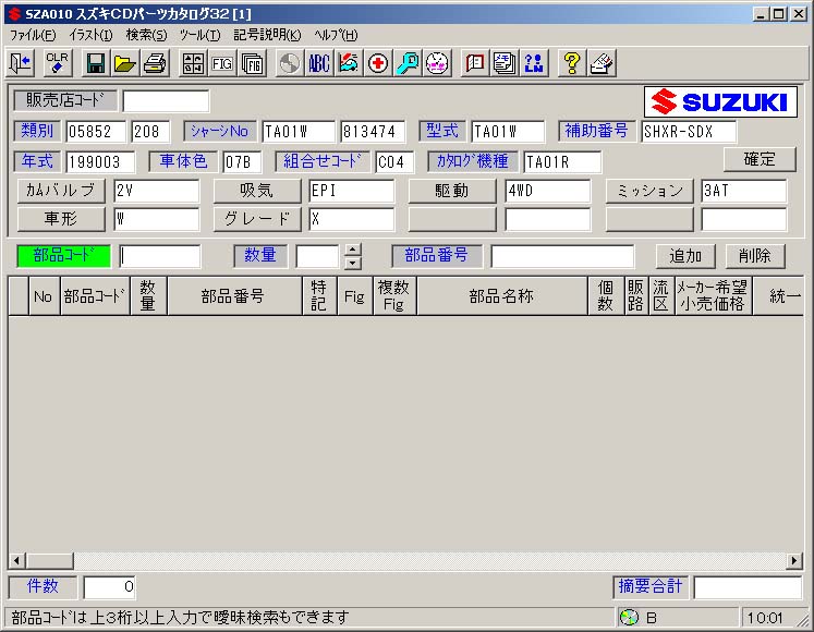 Каталог запчастей SUZUKI for Windows использует интерфейс программы Nissan Fast,