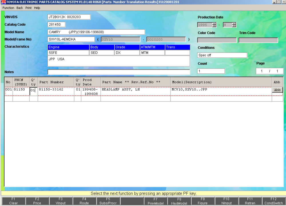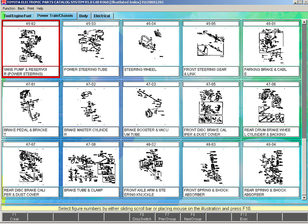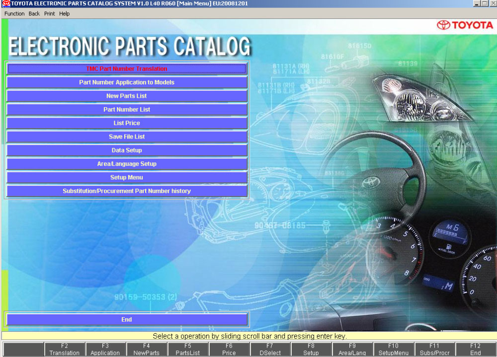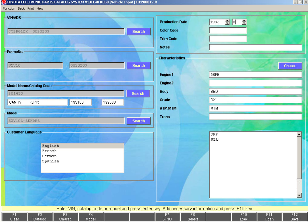 Каталог запчастей Toyota есть четыре встроенных языка (английский, французский, немецкий, испанский) наименования запчастей и пять языков интерфейса, четыре встроенных и один настраиваемый (то есть любой).